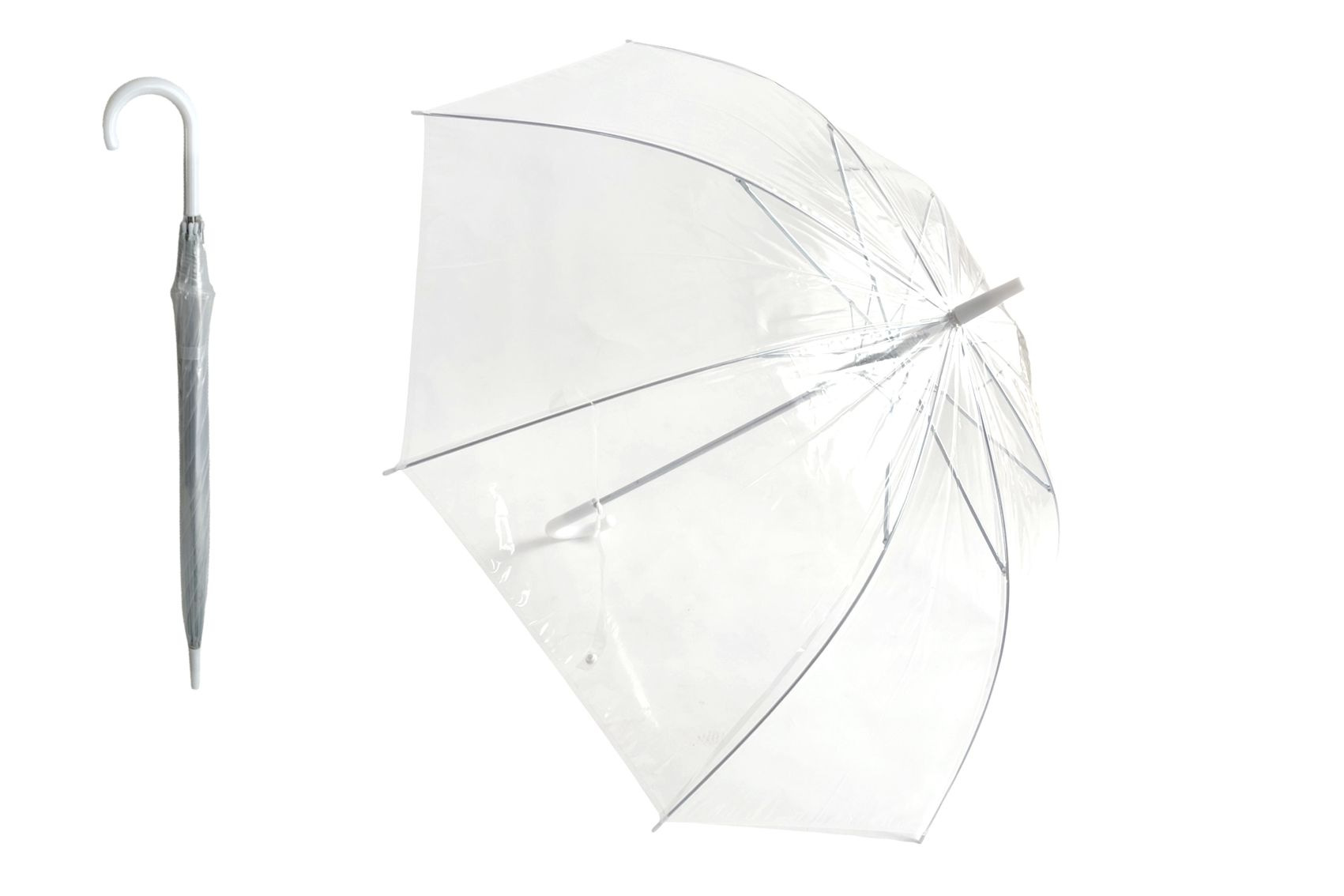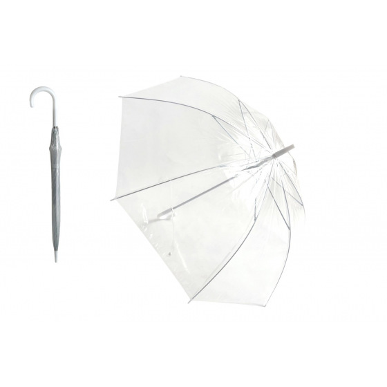 Deštník průhledný bílý svatební plast/kov 82cm v sáčku