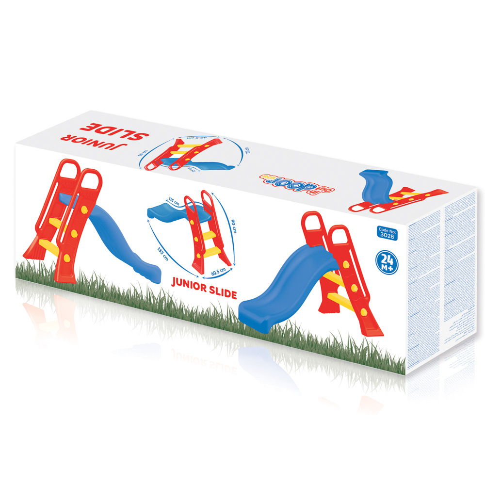 Zábavná dětská skluzavka Junior speciálně navržená pro děti od 2 let, je ideální pro použití uvnitř i venku. Skluzavka poskytuje nejen spoustu zábavy, ale také podporuje fyzický rozvoj dětí, pomáhá s koordinací a obratností. Skluzavka má robustní schůdky, díky nimž se děti budou cítit bezpečně. Díky odolné konstrukci a snadné montáži se skluzavka rychle stane oblíbeným místem pro hraní vašeho dítěte. Vyrobeno z odolného a bezpečného plastu. Délka skluzavky: 115 cm. Rozměr skluzavky: 90 x 60,5 x 135 cm. Rozměr balení: 90 x 135 x 60,5 cm. Věk: 2+