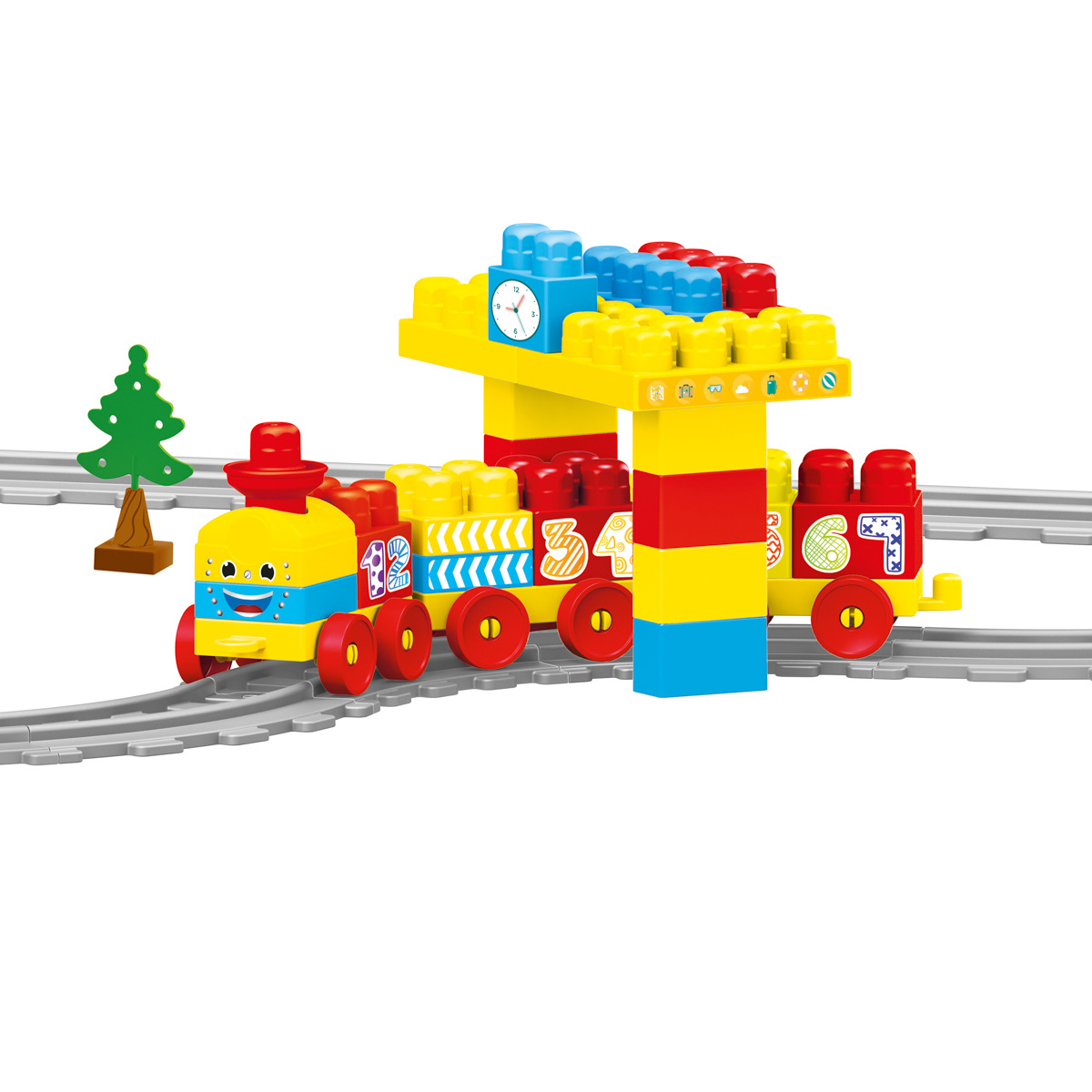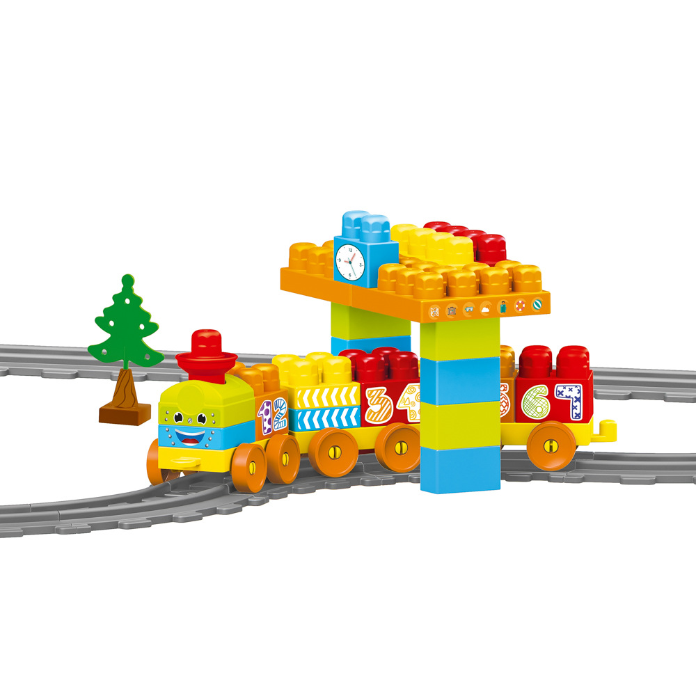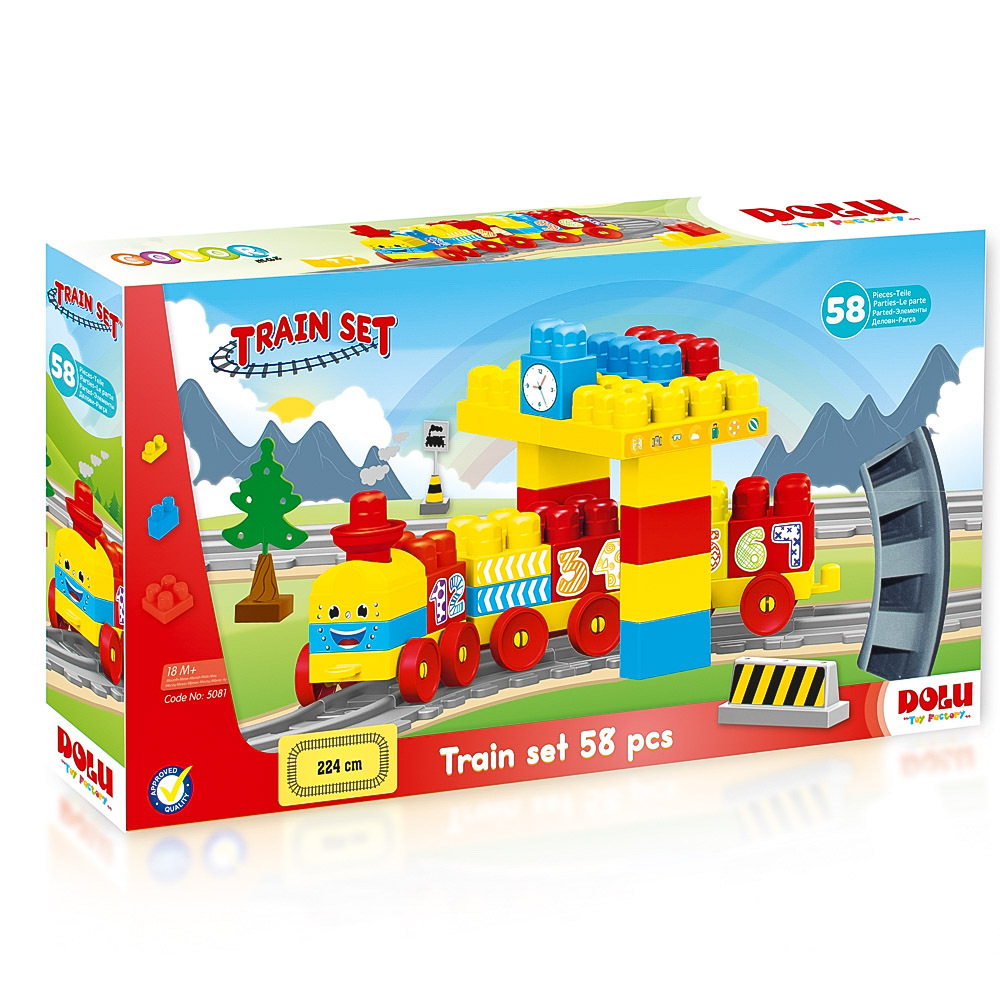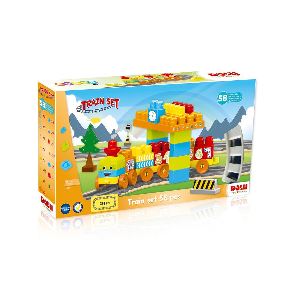 Všichni malí strojvedoucí zajásají! Tato dětská vlaková souparava má spoustu příslušenství, díky kterému bude hra úžasná zabava. Krásné barevné provedení. Vagonky mají na sobě čísla, díky kterým se je děti mohou naučit rozeznávat. Vláčkodráha je vyrobena z kvalitního a odolného materiálu. Délka kolejí je 224 cm. Balení obsahuje 58 dílků. Věková kategorie: 18m+. Velikost produktu: 51 x 90 x 18 cm