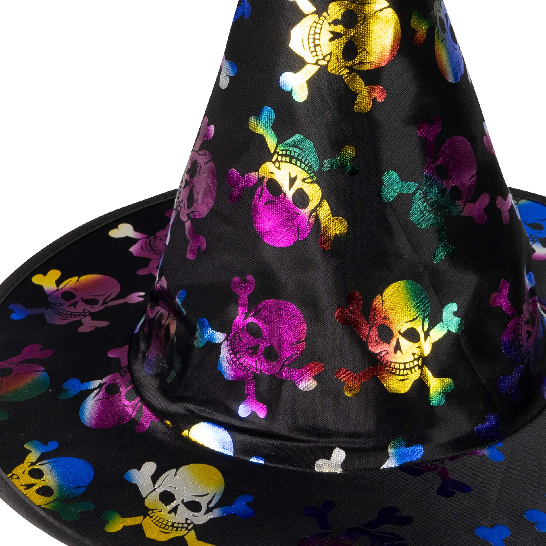Čarodějnický klobouk pro dospělé! Klobouk černé barvy je vysoký 34 cm a zdoben barevnými magickými symboly. Staňte se hvězdou karnevalového večírku díky tomuto nepřehlédnutelnému klobouku a ohromte tak všechny své přátele!