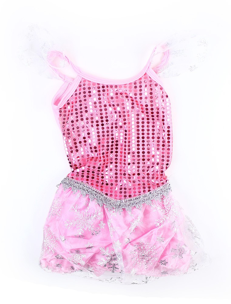 Okouzlující šatičky pro princezny v růžové barvě jsou zdobeny stříbrnými sněhovými vločkami a růžovými flitry. Velikost S je určena pro holčičky ve věkovém rozmezí 4-6 let (110-116 cm).