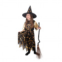 Halloweenský kostým pro malé čarodějnice! Kostým černo-zlaté barvy ve velikosti M je určen pro holčičky ve věkovém rozmezí 6-8 let (117-128 cm). Šaty jsou se dekorovány zlatými halloweenskými motivy. Součástí kostýmu je perfektně sladěný čarodějnický klobouk. S tímto úchvatným kostýmem se zaručeně staneš hvězdou karnevalu i Halloweenu! Koště není součástí balení.
