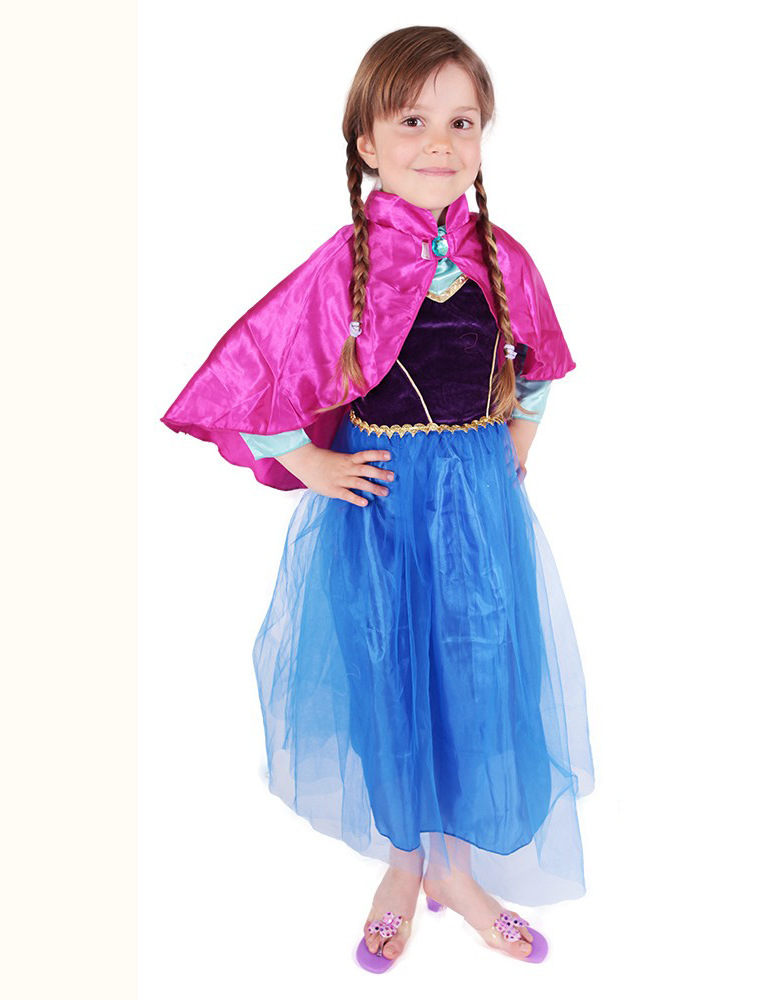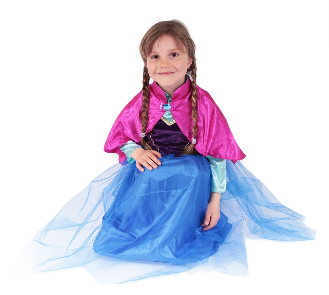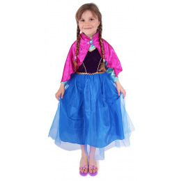 Překrásný dívčí kostým pro všechny sněhové princezny! Kostým ve velikosti M je určen pro holčičky ve věkovém rozmezí 6-8 let (110-128 cm). Velikost se může lišit od vyobrazení na obalu. Kostýmek je ušit v černo-modrých barvách, v horní části je zdoben potiskem, zlatým lemováním kolem pasu. Součástí je také růžový plášť na mašličku.
