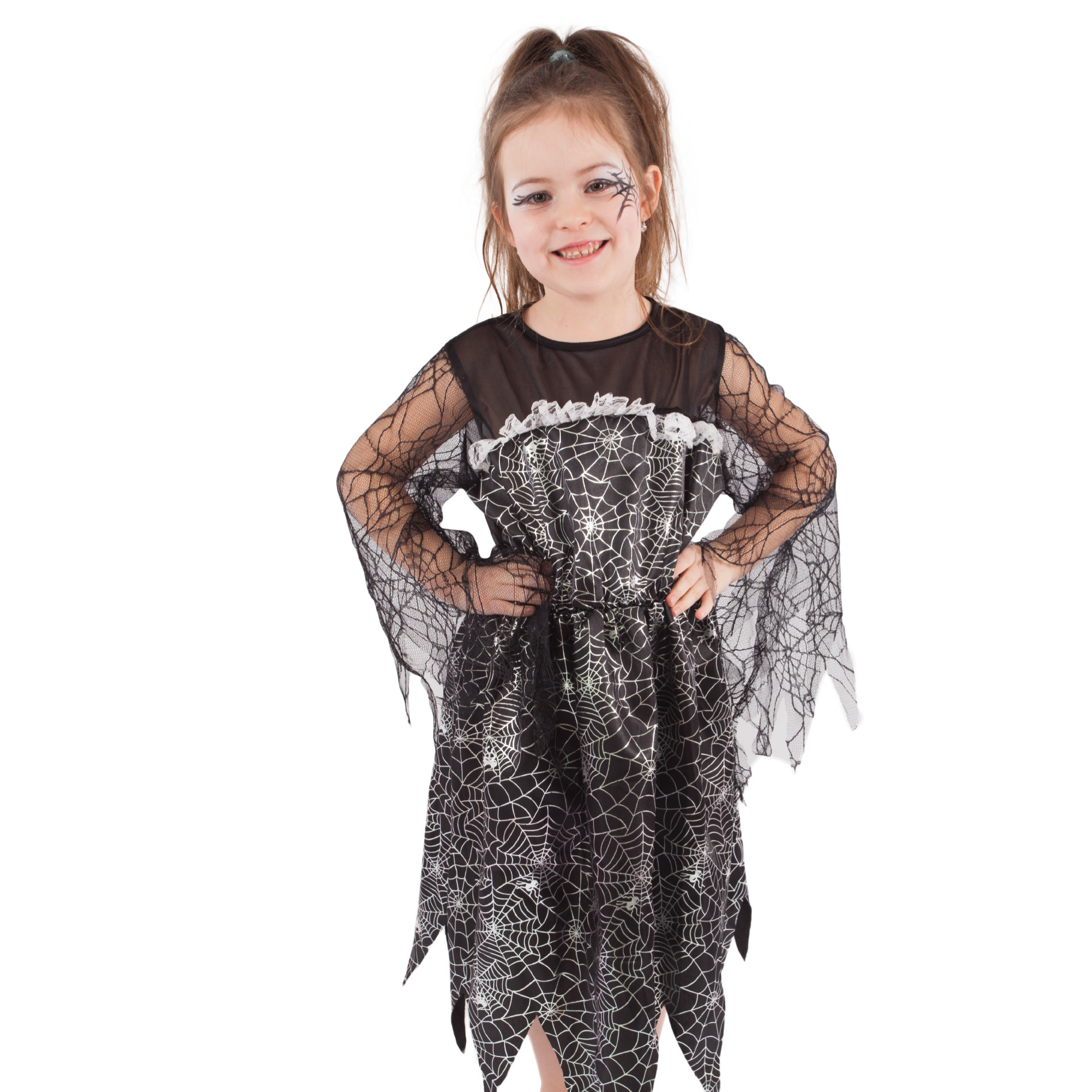 Magický karnevalový kostým pro malé čarodějnice! Kostým ve velikosti M je určen pro holčičky ve věkovém rozmezí 6-8 let (117-128 cm). Černé šaty jsou dekorovány stříbrnou pavučinkou. S tímto úchvatným kostýmem se zaručeně staneš hvězdou karnevalu i Halloweenu! Nejen letos je potřeba myslet EKO-nomicky i EKO-logicky! EKO-balení je vhodné zejména pro e-shopy kde zákazník nakupuje dle fotografie a není třeba velkého balení s věšákem. EKO-logicky – na balení bylo použito méně plastu a dalších materiálů. Jedná se o malý transparentní obal s fotografií. EKO-nomicky –EKO-obal zabere jen polovinu místa – šetřete skladová místa s námi!