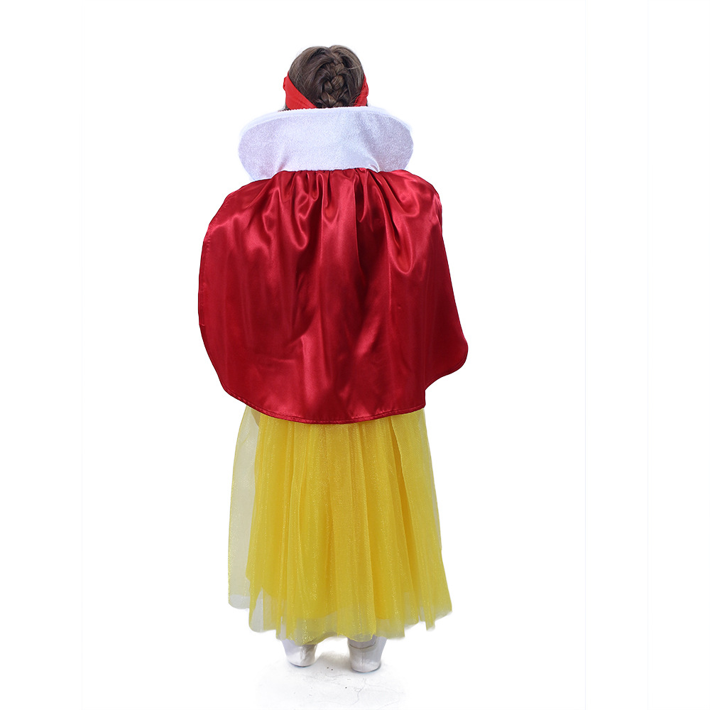 Proměň se během chvilky v půvabnou Sněhurku! Kostýmek o velikosti S je určen pro holčičky ve věkovém rozmezí 4-6 let (105-116 cm). Barevný kostým je dekorován v přední části modrými flitry a zlatým zdobením. Součástí je odnímatelný červený plášť s bílým límcem. Neobsahuje mašli do vlasů.