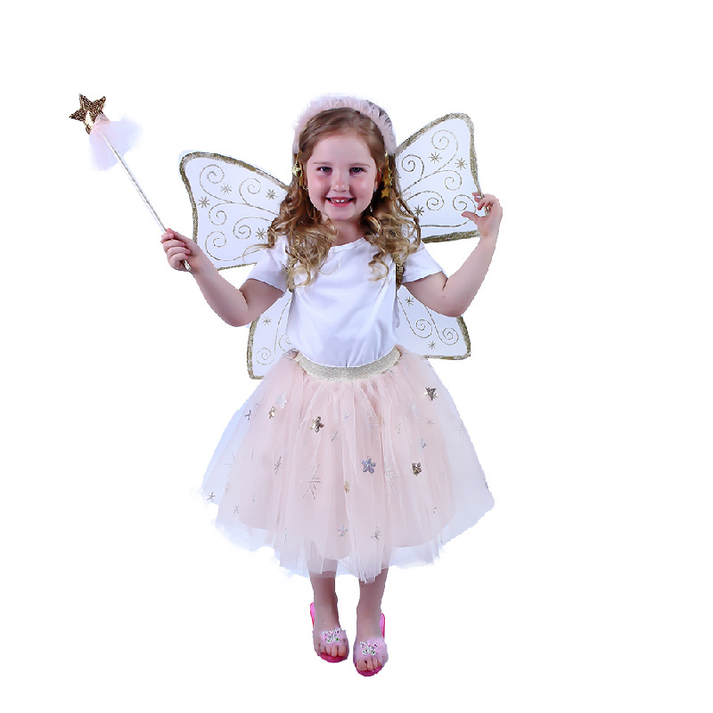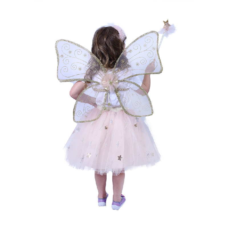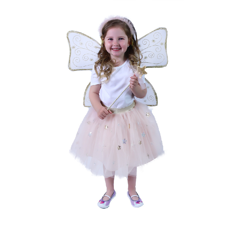 Krásná vílí sada pro malé holčičky! Sada obsahuje křídla se zlatým potiskem, nadýchanou sukýnku s tylem, který je zdobený stříbrnými a zlatými hvězdičkami. Celý set doplňuje vílí kouzelnická hůlka a čelenka do vlasů. Sukně je v pase na gumu a dlouhá cca 34 cm. Nejen letos je potřeba myslet EKO-nomicky i EKO-logicky! EKO-balení je vhodné zejména pro e-shopy kde zákazník nakupuje dle fotografie a není třeba velkého balení s věšákem. EKO-logicky – na balení bylo použito méně plastu a dalších materiálů. Jedná se o malý transparentní obal s fotografií. EKO-nomicky –EKO-obal zabere jen polovinu místa – šetřete skladová místa s námi!