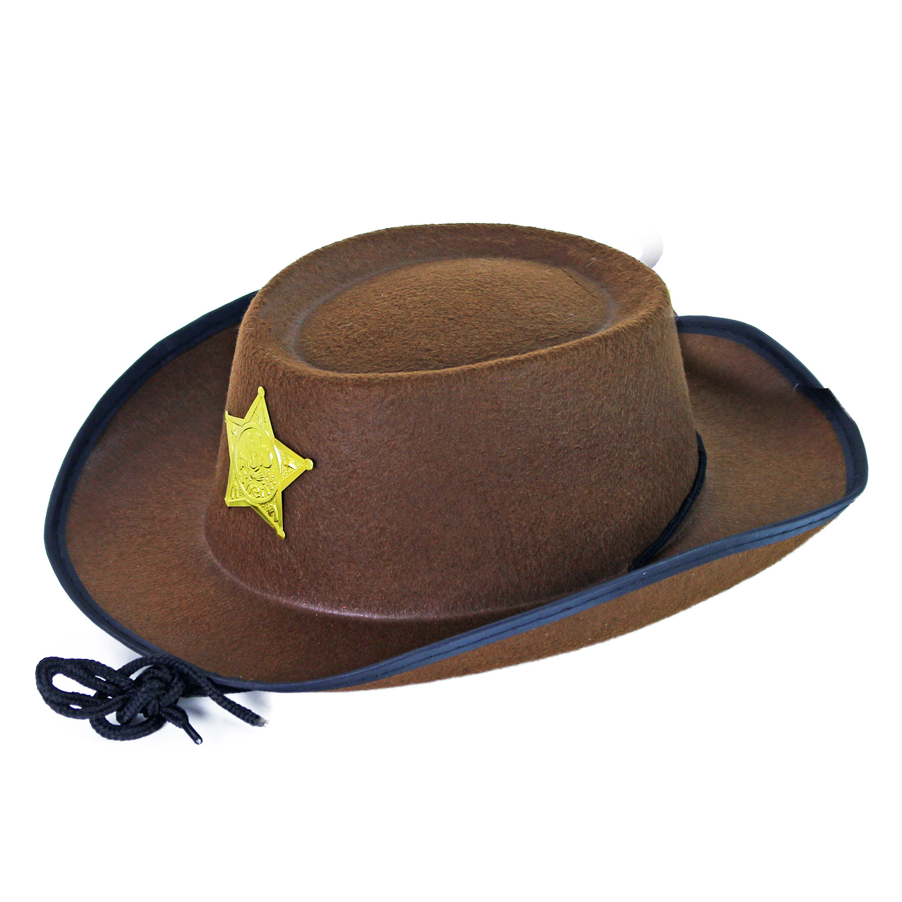 Stylový kovbojský klobouk pro děti! Tento hnědý klobouk je zdoben šerifskou hvězdou. Nasaď si klobouk a jako šerif budeš mít ve svém městě určitě respekt!