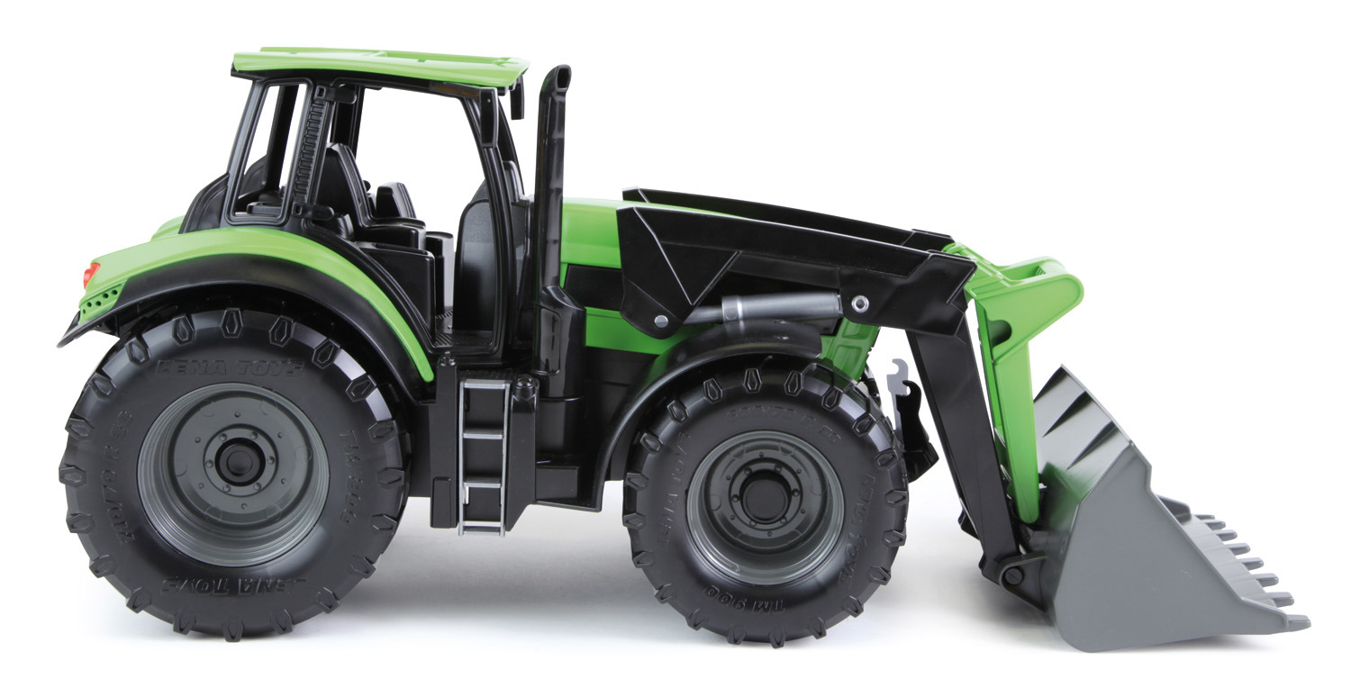Aktivní nakladač z kvalitního plastu a velmi pevnou stavbou. Je plně mechanicky funkční. Obsahuje odklopitelnou kabinu s aktivním panáčkem. Délka cca 30 cm. Vhodné pro kluky od 3 let.