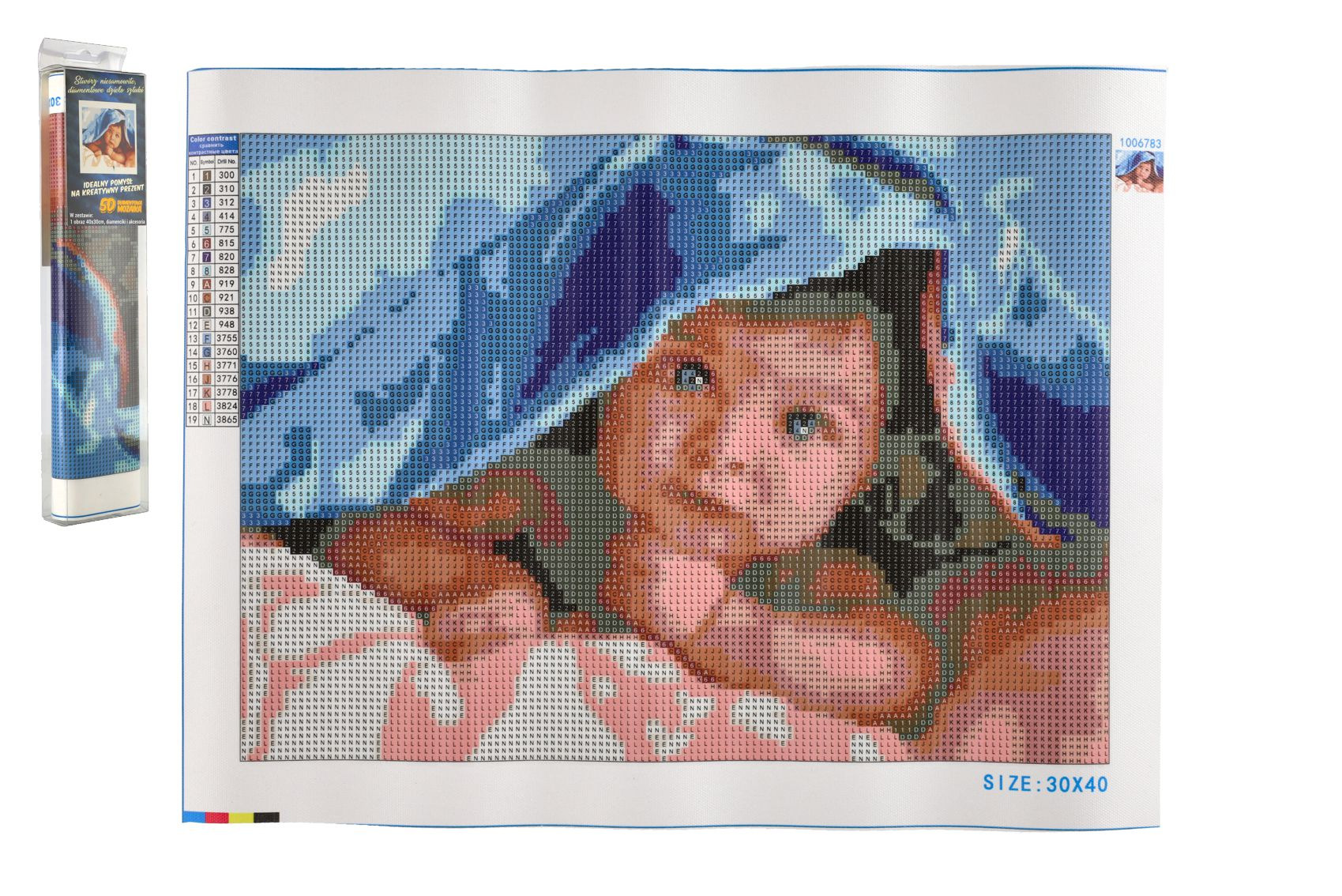 SMT Creatoys Diamantový obrázek Miminko pod dekou 40x30cm s doplňky v blistru 7x33x3cm