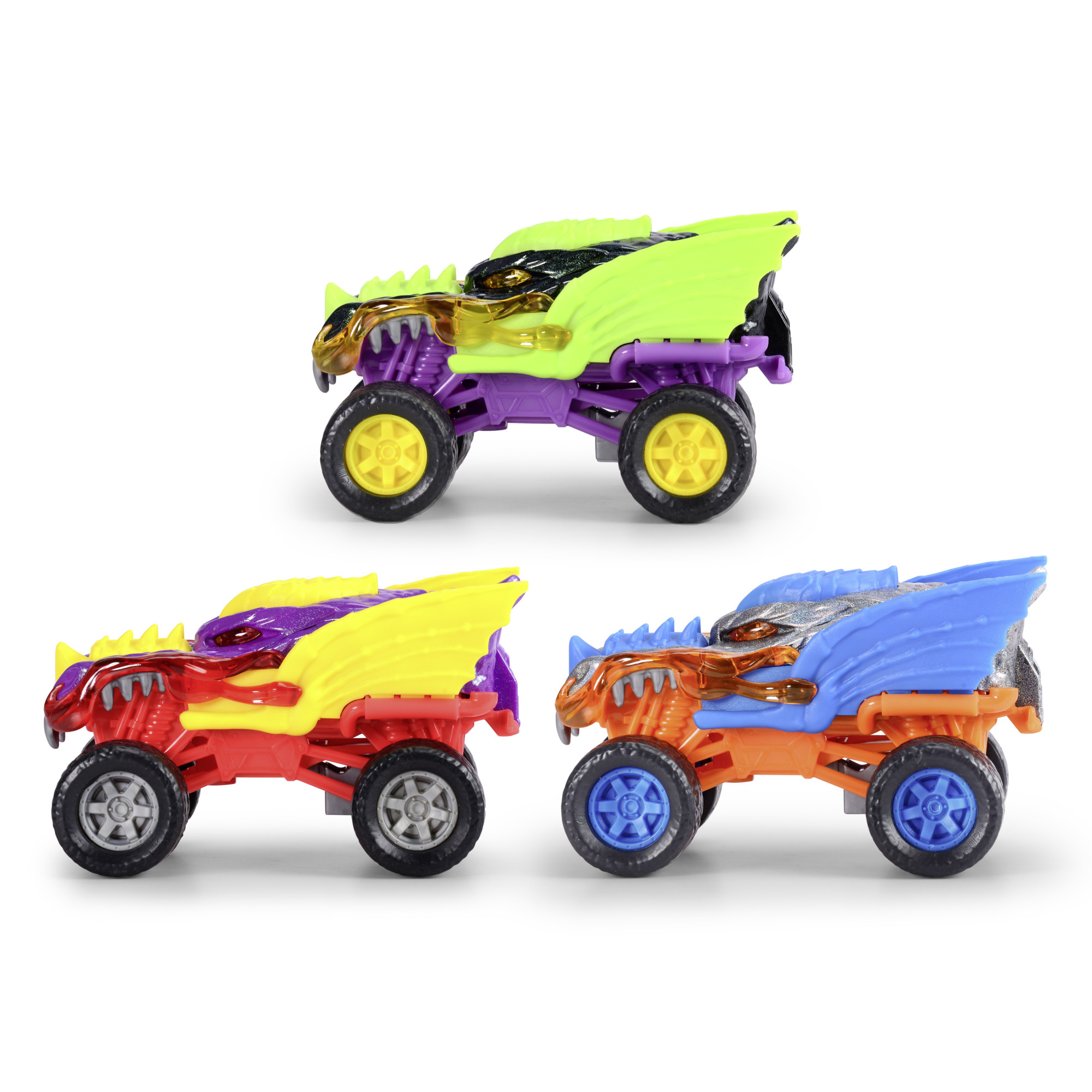 Auto Monster Dragon do terénu s kovovým tělem na natažení, gumové pneumatiky. Délka 15 cm, 3 barevné