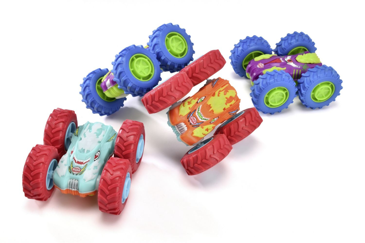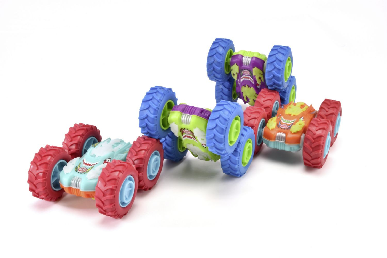 Auto na setrvačník s velkými koly a přetáčecí funkcí. Délka 10 cm, 4 druhy.