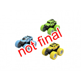 Auto Monster Truck na setrvačník s gumovými pneumatikami. 2 druhy - červený/modrý. Velikost 8,5 cm.