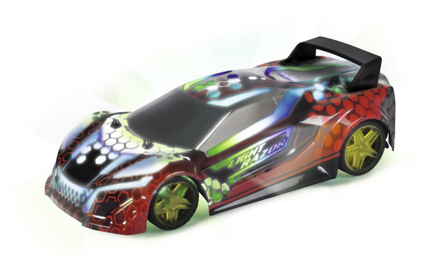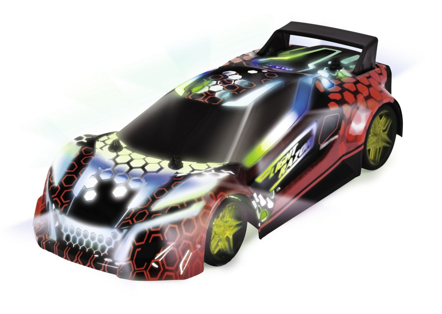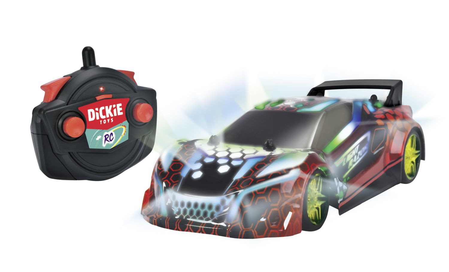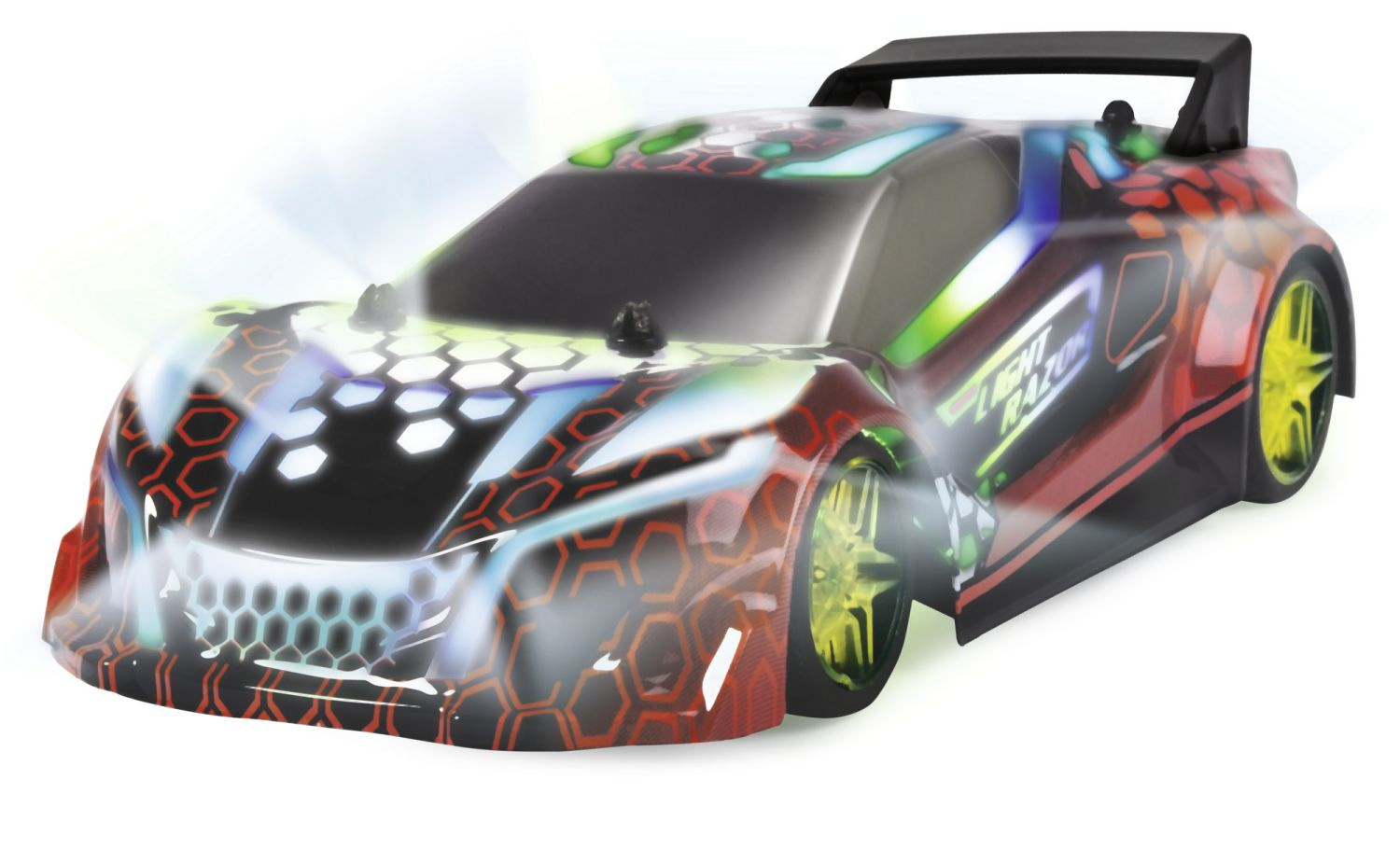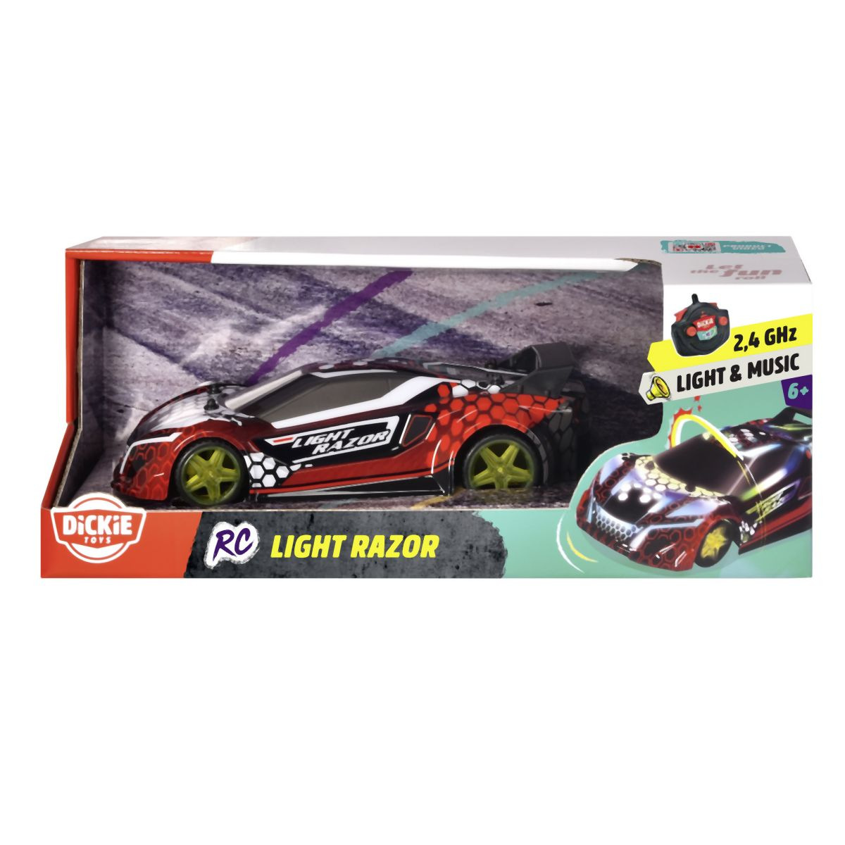 Závodní sporťák 2-kanálový na dálkové ovládání s vícebarevným LED světlem a zvukem, frekvence 2,4 GHz, v měřítku 1:20. Rychlost: až 7 km/h. Sportovní vůz má přilnavé pneumatiky, takže auto neztrácí přilnavost na trati a v zatáčkách. A robustní karoserie zajistí, že se vozu při nárazu nic nestane. Délka 22 cm.