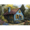 Ponořte se do světa klidu a nádherných barev s tímto 500dílným puzzle od DINO! Obraz zachycuje okouzlující modrý domek s cihlovou střechou, ukrytý v bujné a rozkvetlé zahradě. Tato relaxační skládačka je ideální pro chvíle odpočinku a pro milovníky přírody a malířského stylu.