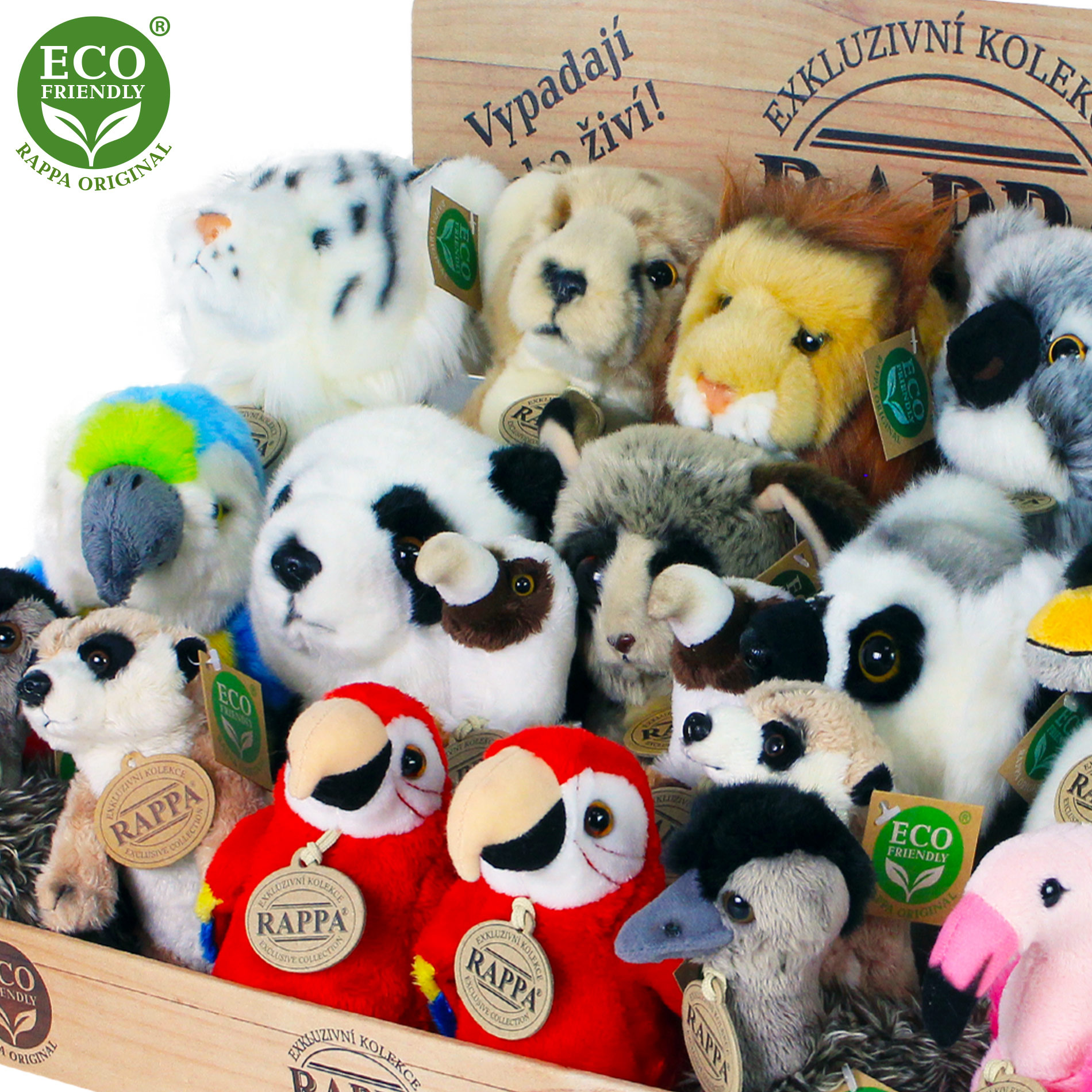 Rappa Displej exkluzivní plyš exotická zvířata ECO-FRIENDLY