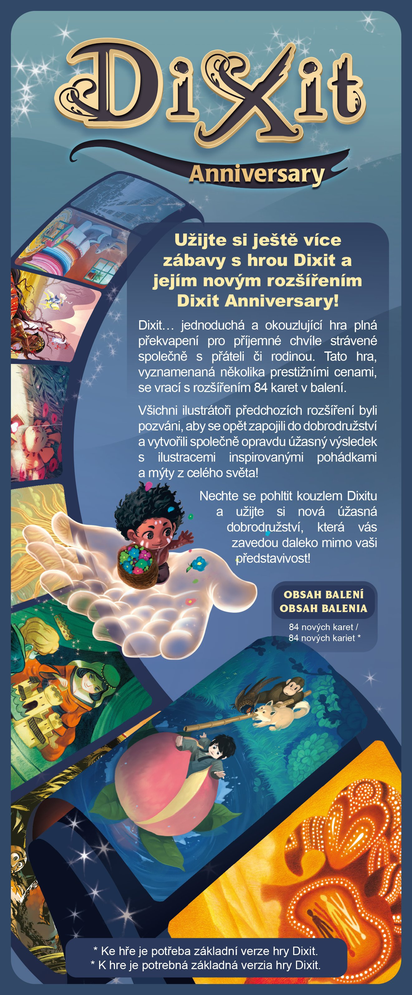 DIXIT SLAVÍ 10. NAROZENINY! Rozšíření pro populární rodinnou hru Dixit obsahující 84 zcela nových karet včetně karty Pražského hradu! Více