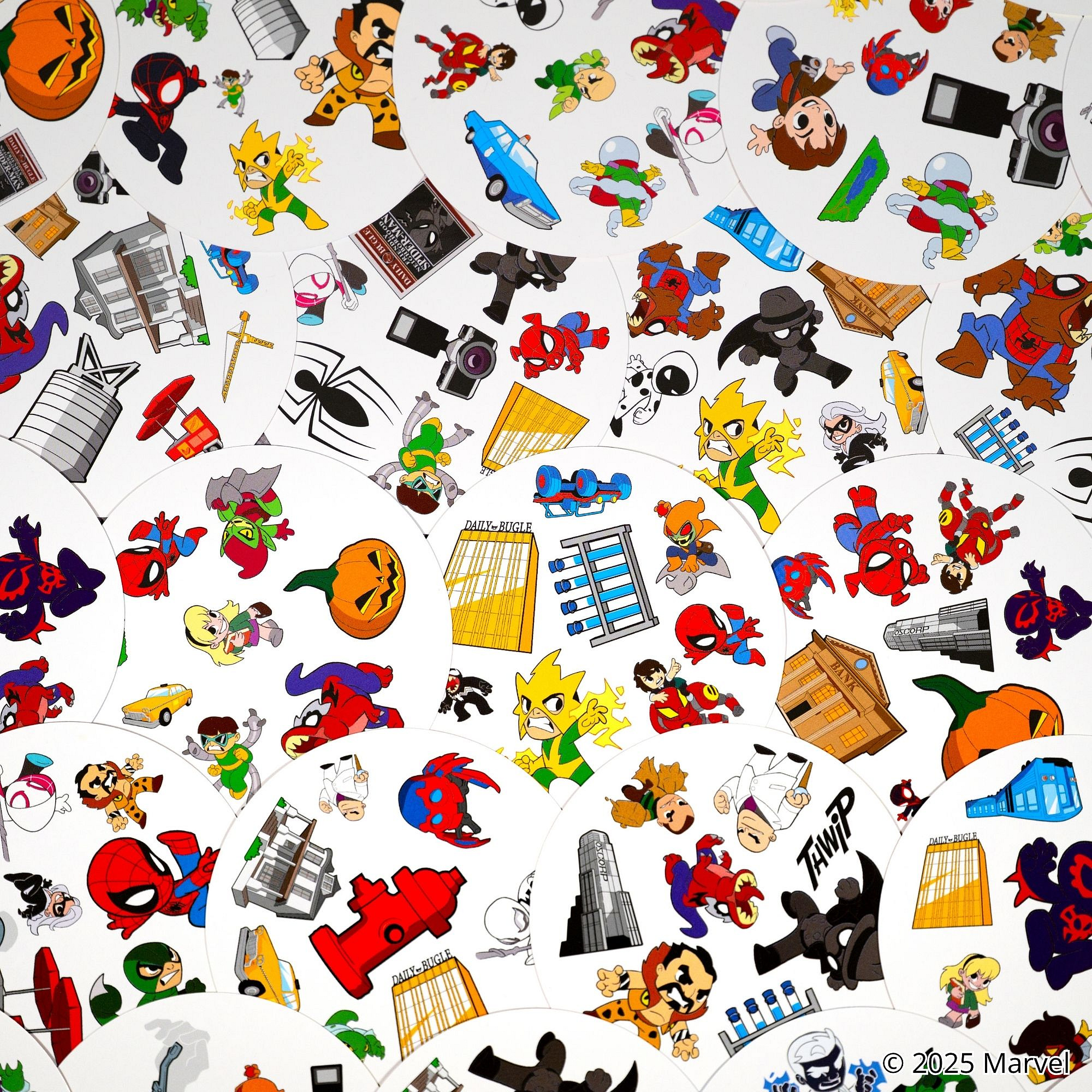 Jednoduchá, zábavná a rychlá: Dobble je hra, která procvičí vaši pozornost a postřeh! Buďte nejrychlejší a jako první pojmenujte jediný společný symbol mezi 2 kartami, čímž kartu získáte nebo se jí zbavíte! Najděte Spidermana, Venoma, tetu May a všechny své oblíbené hrdiny a padouchy z komiksů Spider-Man na 55 ilustrovaných kartách!