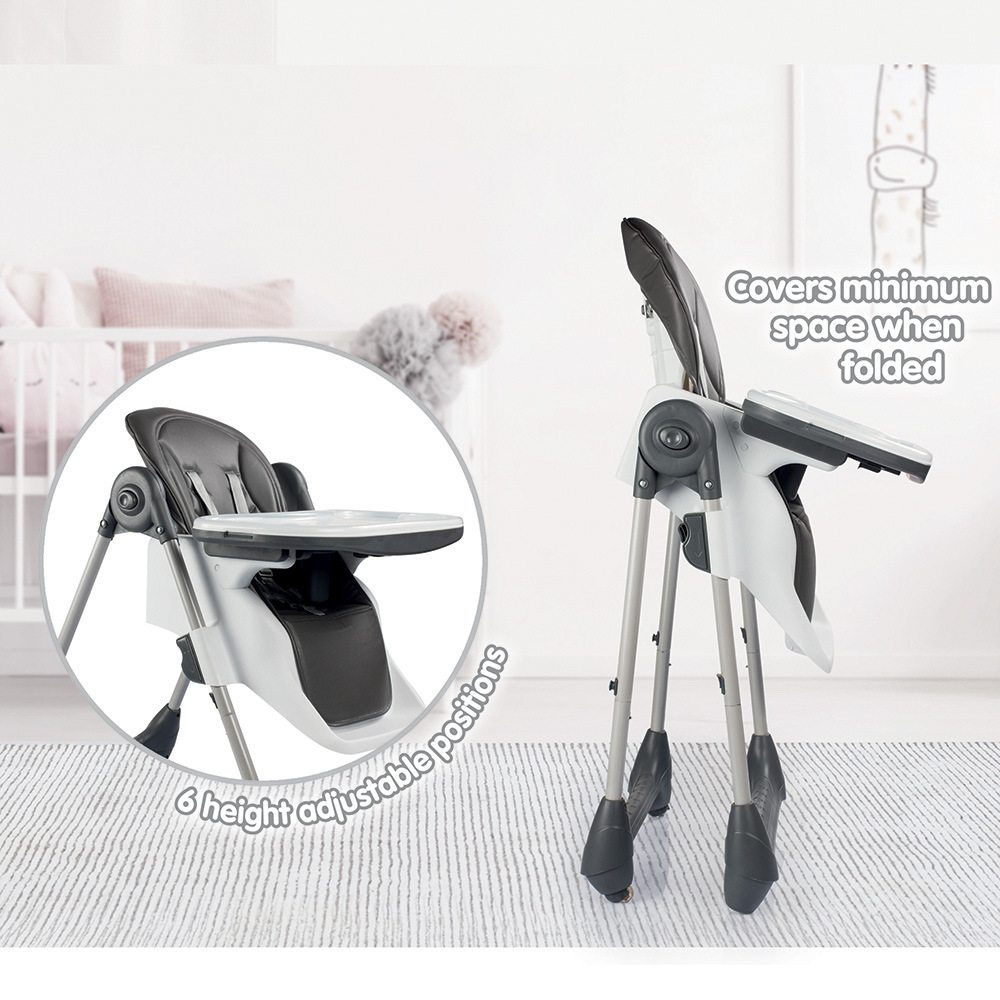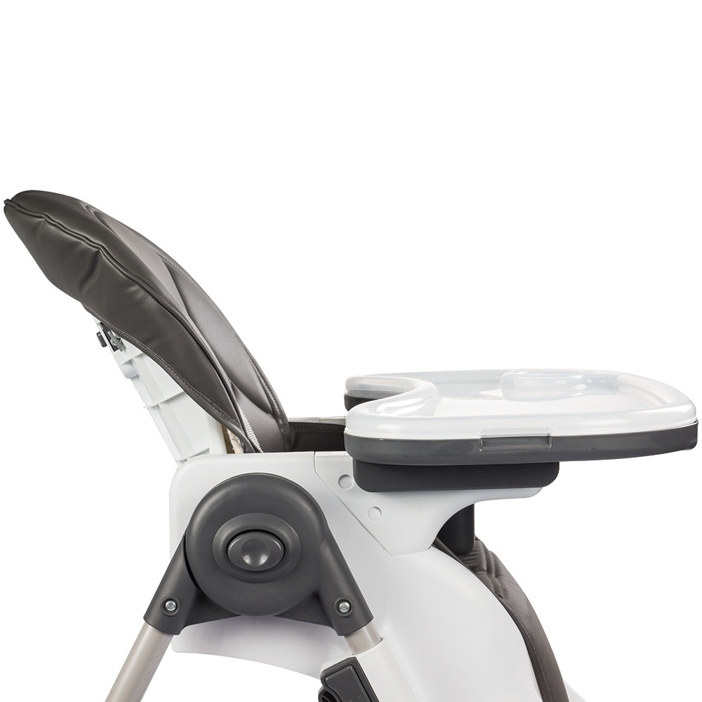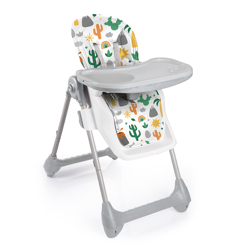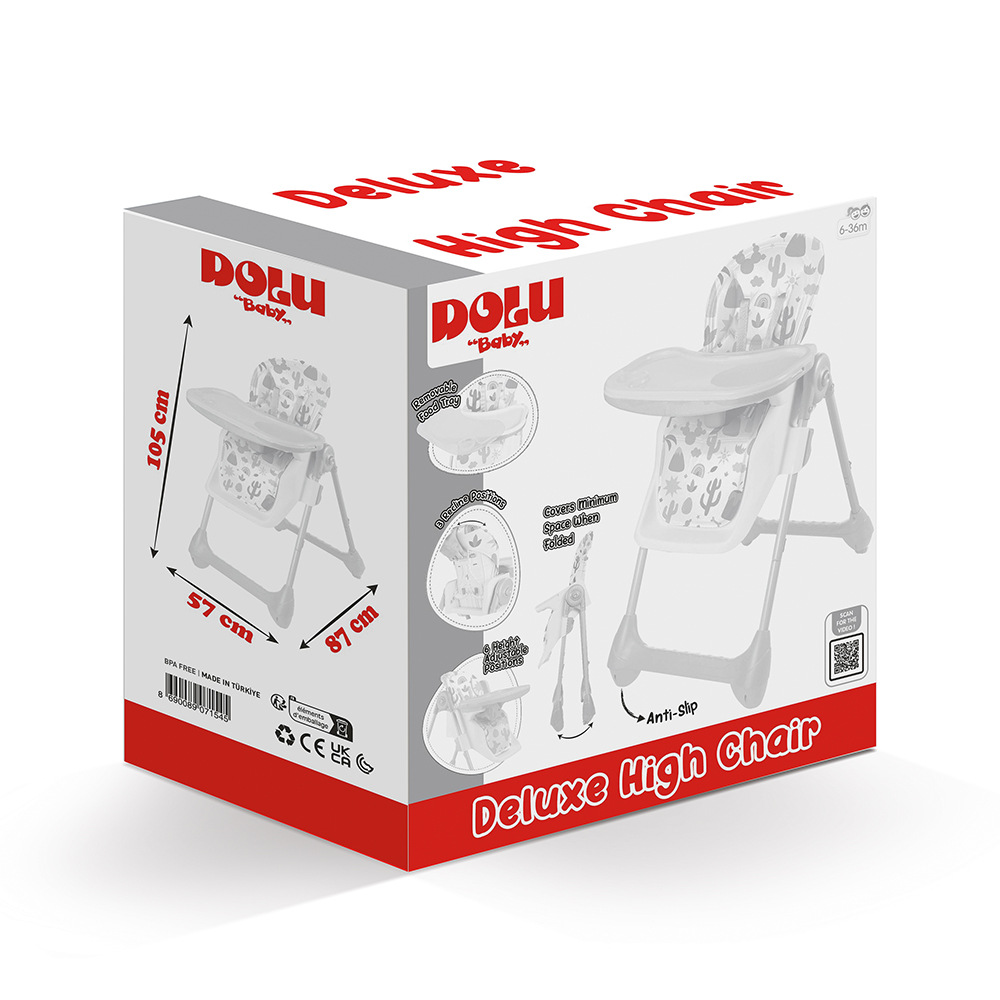 Dětská jídelní židlička deluxe v šedo-bílém provedení. Díky 5-bodovému bezpečnostnímu pásu je zajištěna maximální bezpečnost dítěte. Jídelní židlička je stabilní, pohodlná a potah je snadno omyvatelný. Jídelní pult je odnímatelný. Židlička má 6 výškově nastavitelných poloh. Zádová opěrka má 3 pozice sklopení. Složená židlička zabere minimální prostor. Vyrobeno z kvalitního a nezávadného materiálu. Rozměr cca: 105 x 57 x 87 cm. Rozměr balení: 61 x 32 x 22,5 cm. Věk: 6m+. Video: https://www.youtube.com/watch?v=GGsUL1HPOi4