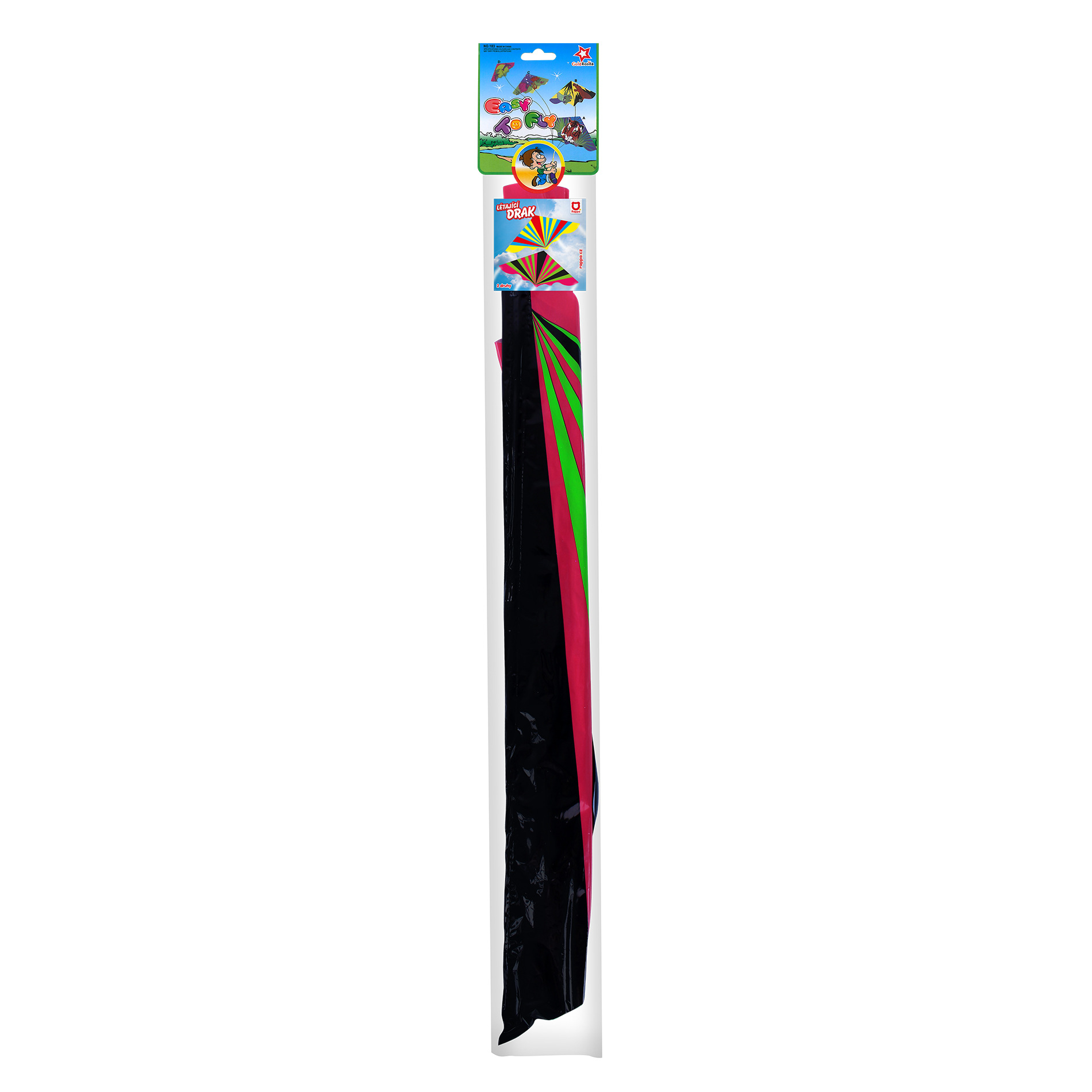 Barevný plastový drak je ideálním doplňkem pro podzimní dovádění! Rozměry draka jsou 128 x 61 cm. Stačí si vybrat! Balení obsahuje draka, konstrukci a vodící šňůru s úchytem.