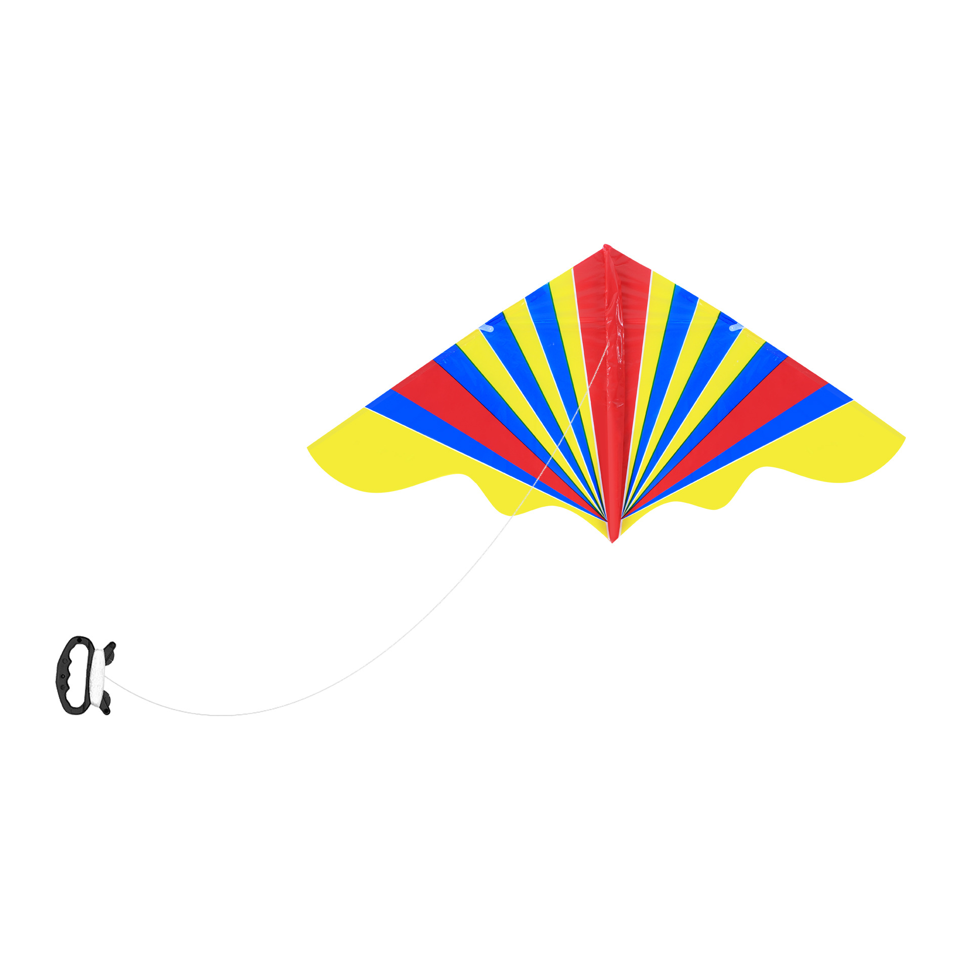 Barevný nylonový drak ve tvaru rogala. Barvy se mohou lišit. Dodáváme dle skladové dostupnosti. Drak