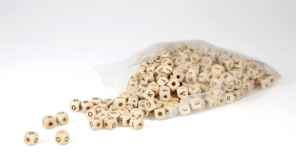 300ks dřevěných korálků s předtištěnými písmeny. Velikost korálku 1cmVíce