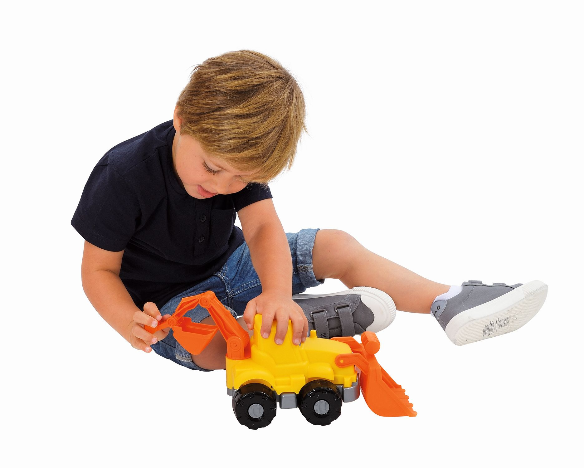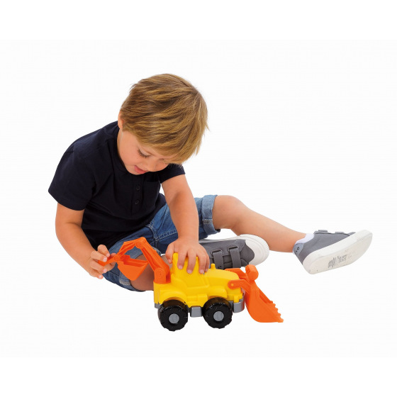 Robustní stavební plastový bagr s pohyblivou přední radlicí a pohyblivým zadním rypadlem. Ideální je pro prázdninové použití na pláži, na pískovišti doma nebo na hřišti. Rozměry produktu (DxŠxV): 29 x 14,5 x 17,5 cm.