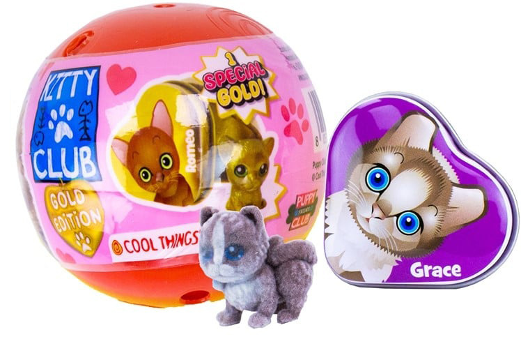 Krabička/kapsle/koule s překvapením obsahující figurku kočičky Kitty Club Gold Edition, 50 mm, 8 dru