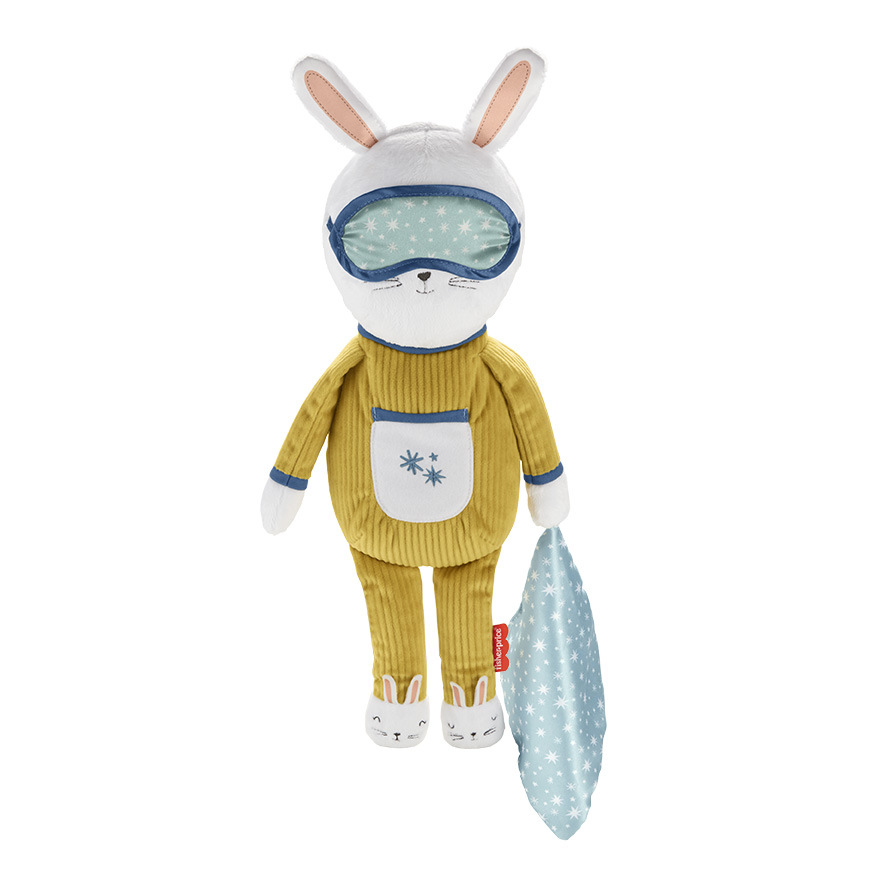 Fisher-Price® Zajíček na spinání pro vaše děti má svítící bříško a učí batolata, kdy je čas jít spát a kdy vstávat. Červená znamená, že je čas jít spát a zelená, že je čas vstávat. Zajíček dokonce zívá, aby dal děťátku vědět, že se blíží čas jít spát! Hračka je nastavitelná přes aplikaci Smart Connect. Rodiče mohou nastavit čas spánku, hudbu a vybrat různé barvy pomocí chytrých zařízení. Nechybí 20 minut hudby a 4 uklidňující zvuky včetně bílého šumu, který pomůže děťátku odplout do říše snů. Speciálně vytvořený postup Ready, Settle, Sleep pomůže děťátku usnout a spát. Ready: Podmanivá barevná světla a uklidňující hudba. Settle: Teplé světlo a tlumená hudba. Sleep: Bílý šum. Zajíček je vyroben z příjemného materiálu, který si děti zamilují.