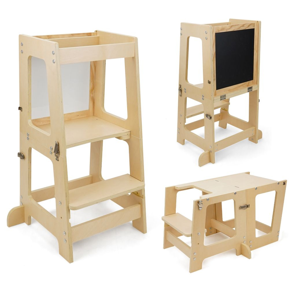 2. K dispozici jsou 2 stupně nastavení výšky (16,5 & 22,5 cm -měřte od podlahy), aby vyhovovaly dítěti od malých až po vyšší. 3. Prodloužené nohy pro vyšší stabilitu věže. 4. Oboustranná psací tabule je součástí balení: křídová tabule a magnetická tabule. 5. Vhodné pro děti ve věku 18-36 měsíců.