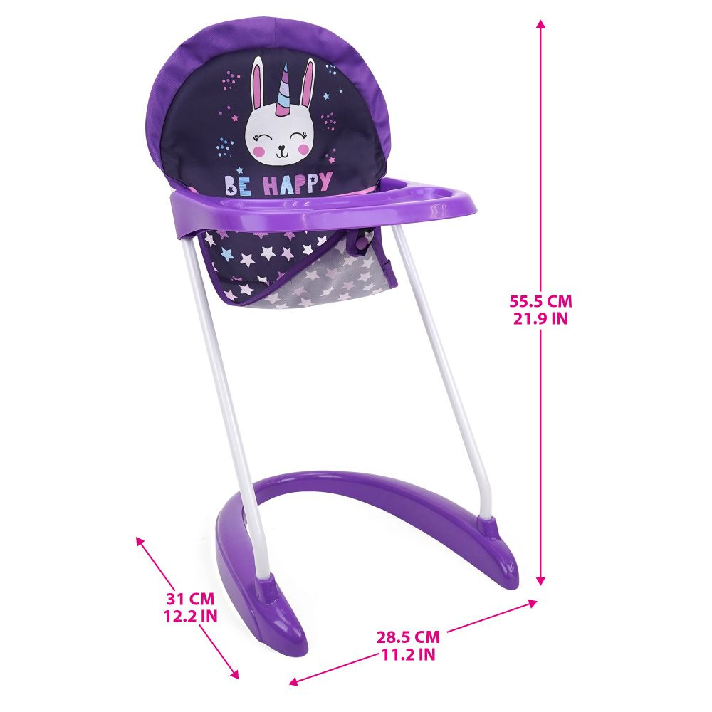 Vysoká židlička pro panenku 509 Crew Spring Pink. S předním zásobníkem pro podávání. Snadná montáž