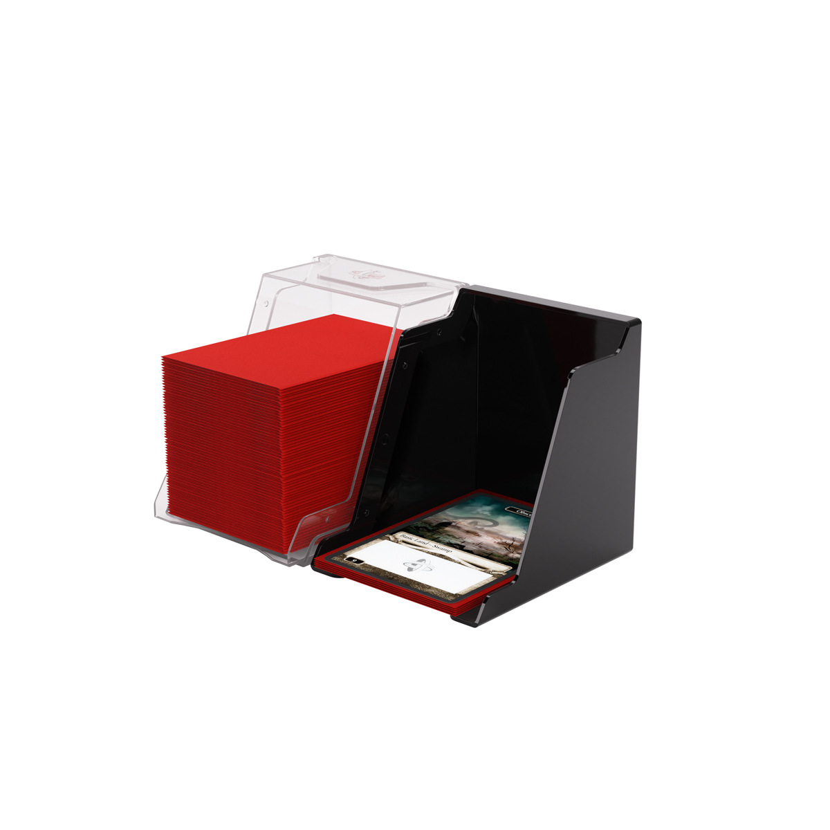 Kompaktní a odolná krabička na karty, která pojme více než 100 karet v dvojobalech. Díky průhlednému materiálu a chytrému uzavírání je vrchní karta plně viditelná zvenčí bez nutnosti otevírání krabičky. Krabička je k dispozici v 10 různých barvách, včetně exkluzivní černé/průhledné verze.