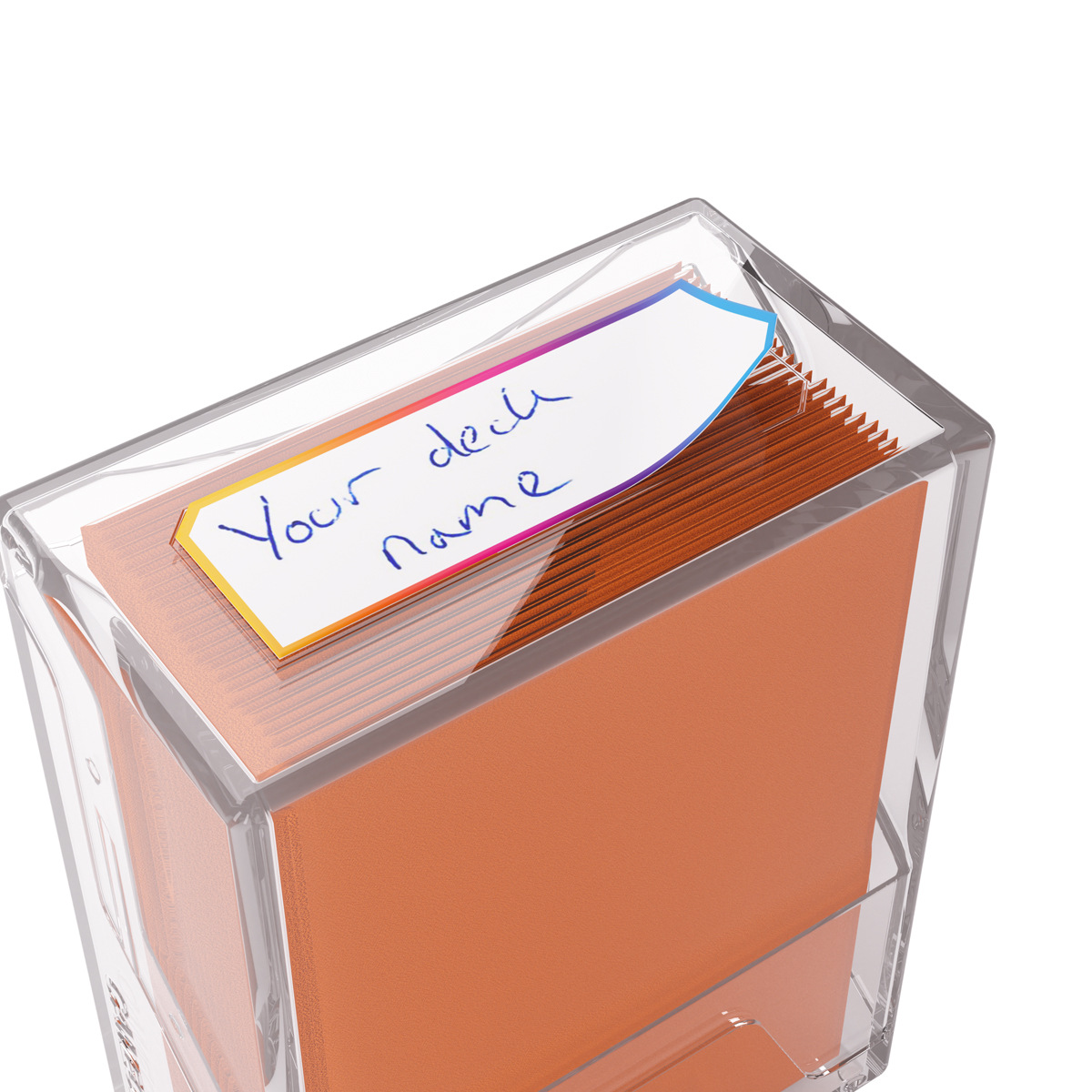 Kompaktní a odolná krabička na karty, která pojme více než 50 karet v dvojobalech. Díky průhlednému materiálu a chytrému uzavírání je vrchní karta plně viditelná zvenčí bez nutnosti otevírání krabičky. Krabička je k dispozici v 10 různých barvách, včetně exkluzivní černé/průhledné verze.
