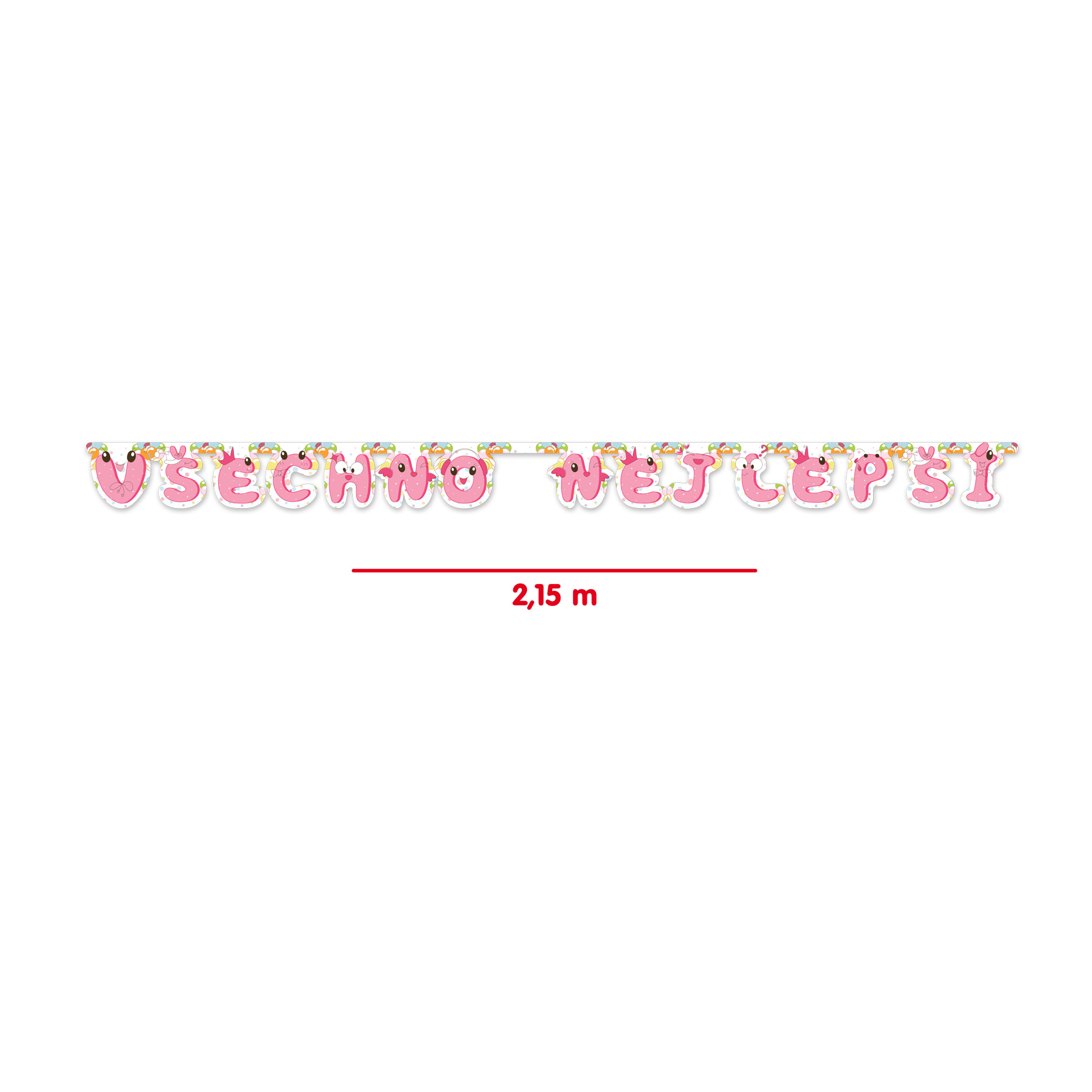Máme pro tebe skvělý tip na oslavu - girlanda Všechno nejlepší v růžovém provedení! Stačí roztáhnout a pověsit. S touto veselou girlandou bude tvoje výzdoba na párty jedinečná. Délka cca 215 cm.