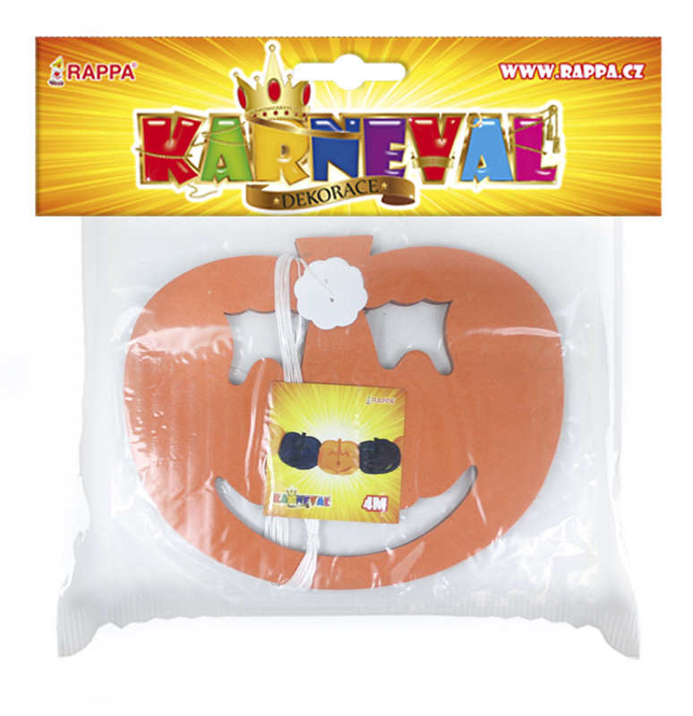 Stylová girlanda je perfektní ozdobou sálů a večírků v období Halloweenu! Černo-oranžová girlanda s veselými dýněmi je vyrobena z papíru.