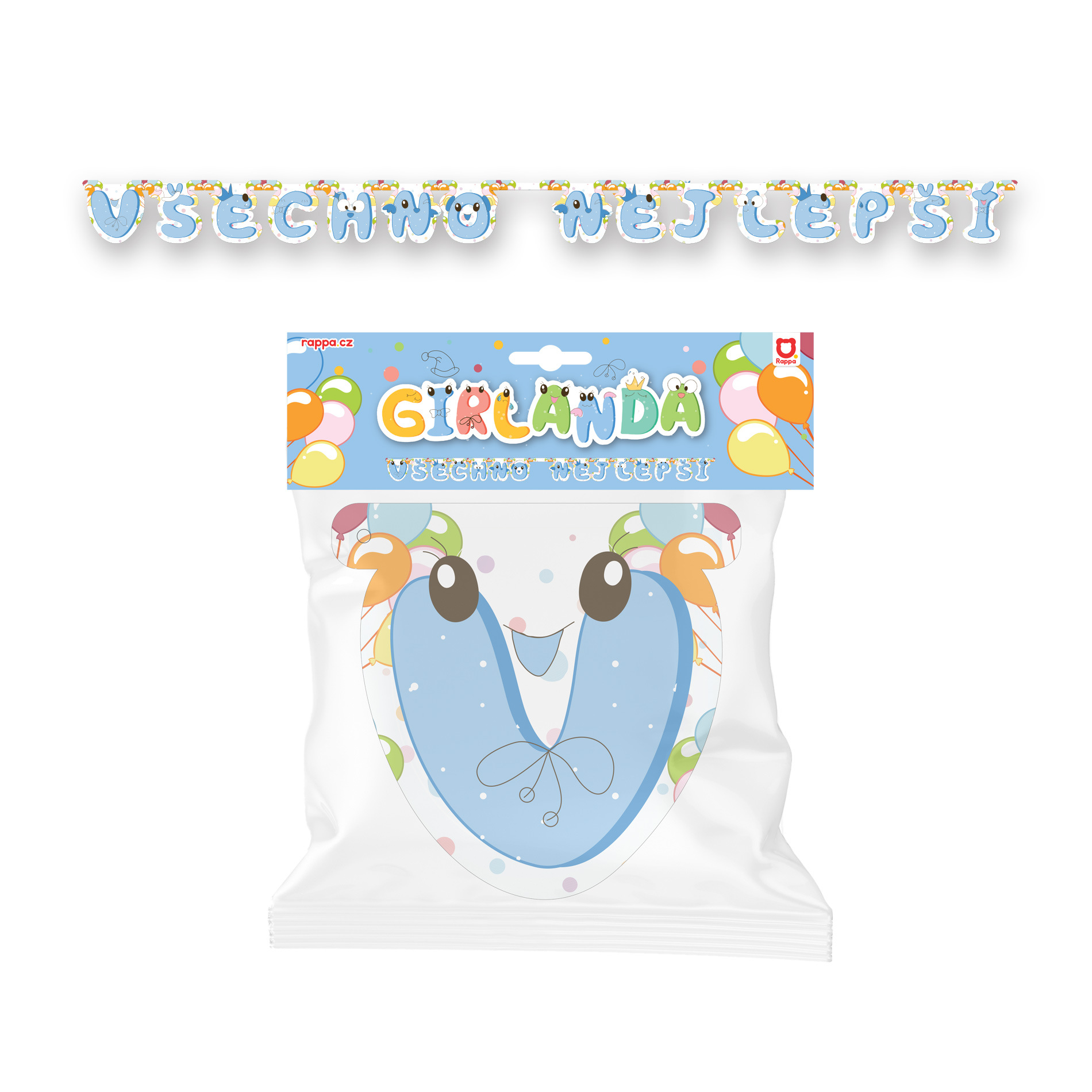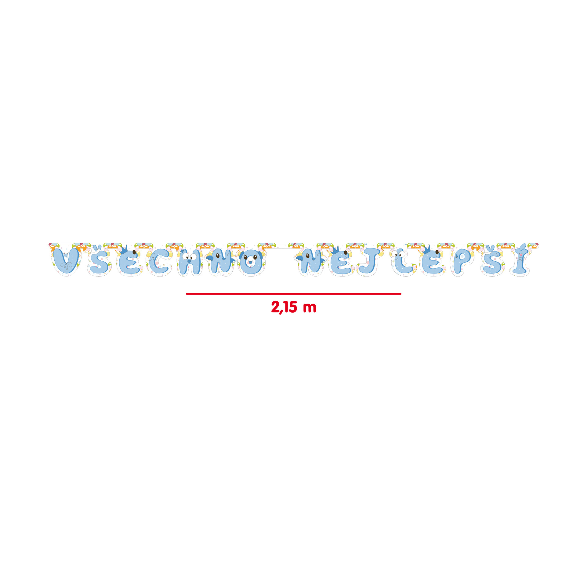 Super tip na oslavu - girlanda Všechno nejlepší v modrém provedení! Stačí roztáhnout a pověsit. Díky této veselé girlandě bude tvoje výzdoba na párty nepřehlédnutelná. Délka cca 215 cm.
