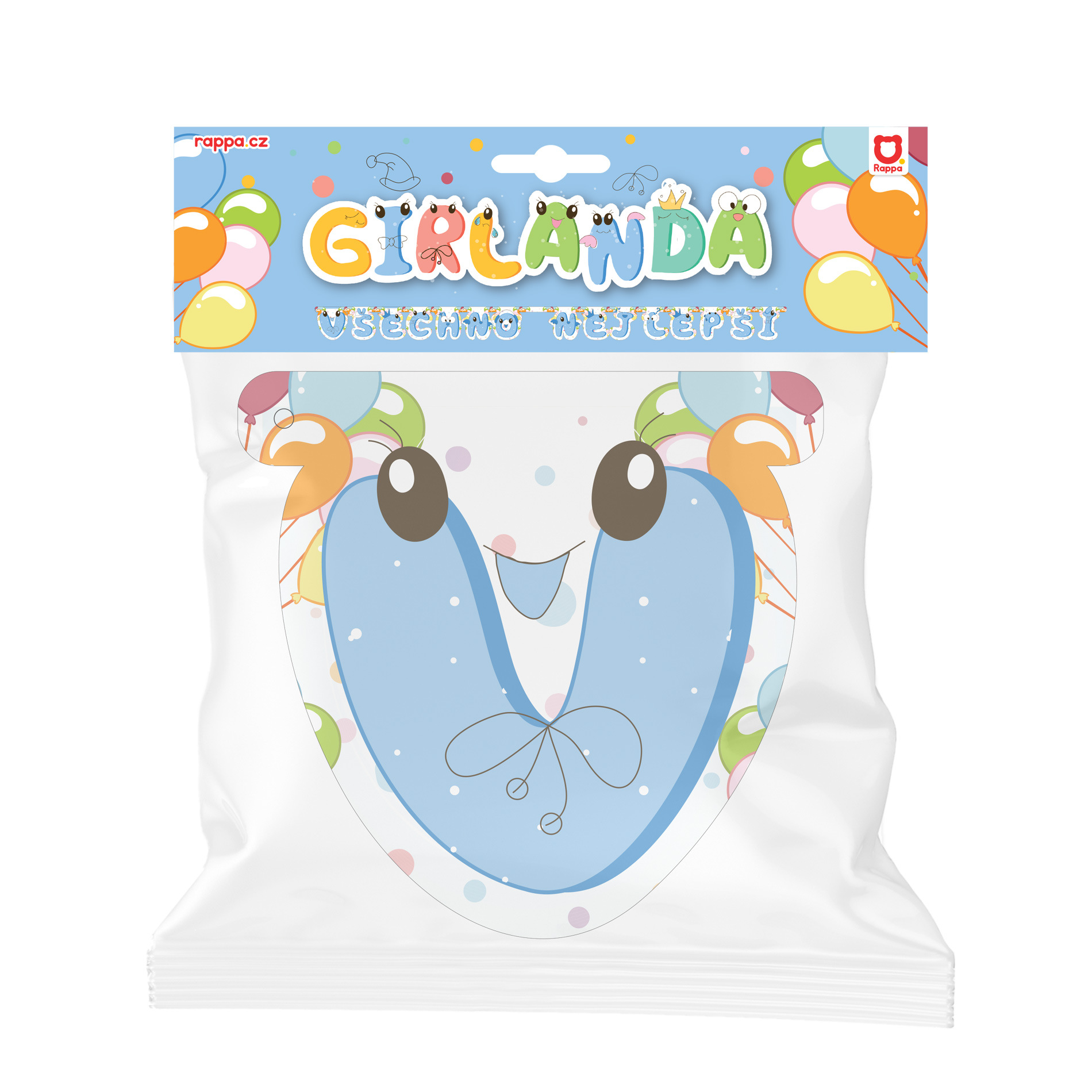 Rappa Papírová girlanda Všechno nejlepší - modrá