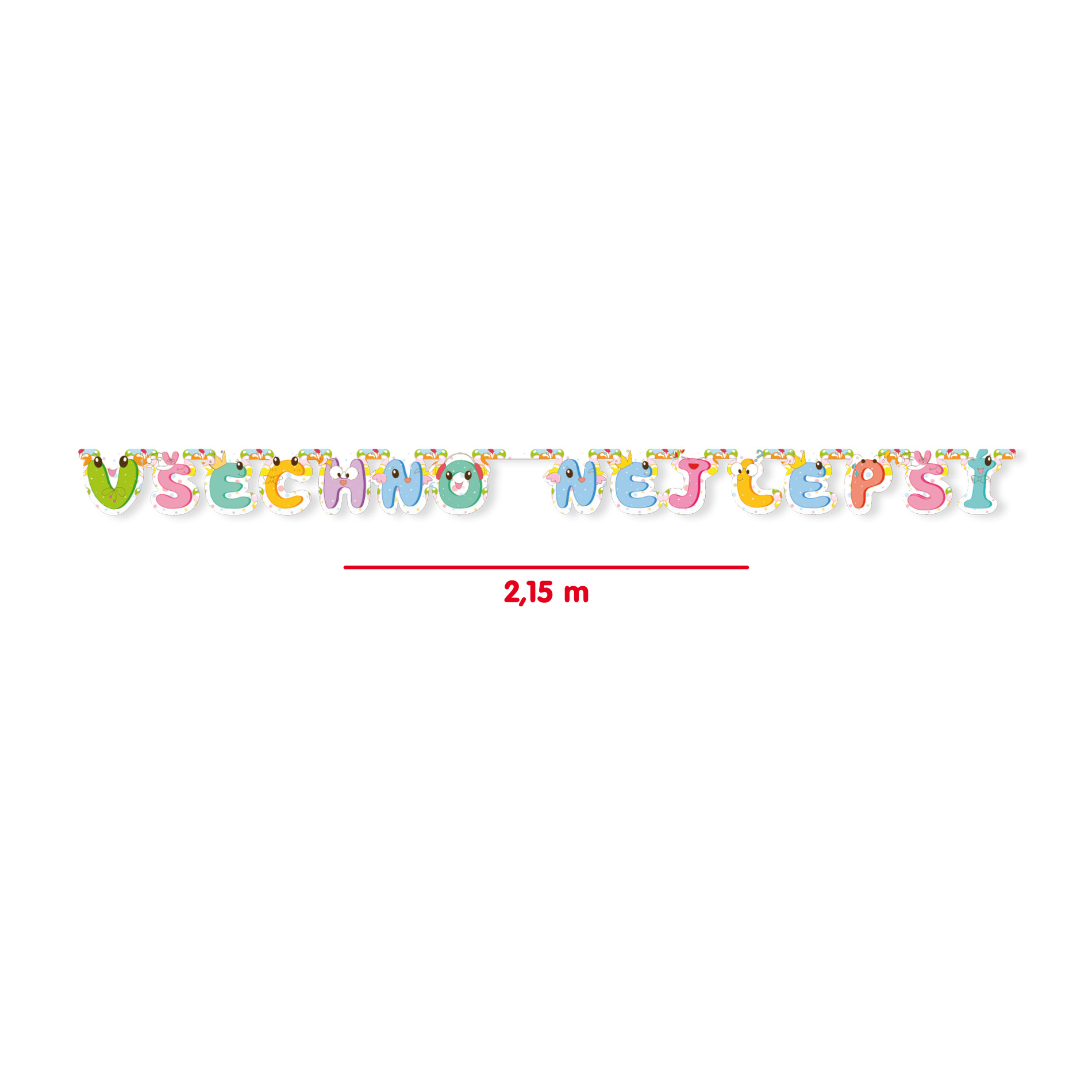 Super tip na oslavu - girlanda Všechno nejlepší! Stačí roztáhnout a pověsit. S touto parádní girlandou bude tvoje výzdoba na párty nepřehlédnutelná. Délka cca 215 cm.