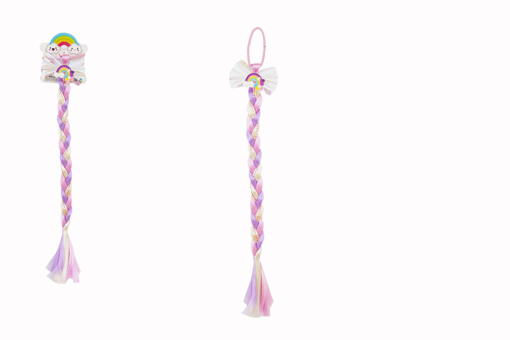 Popis Gumička do vlasů s mašlí s dlouhým barevným copem s flitry 8x40cm v sáčku