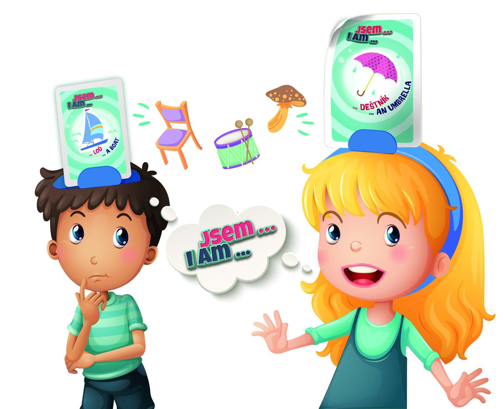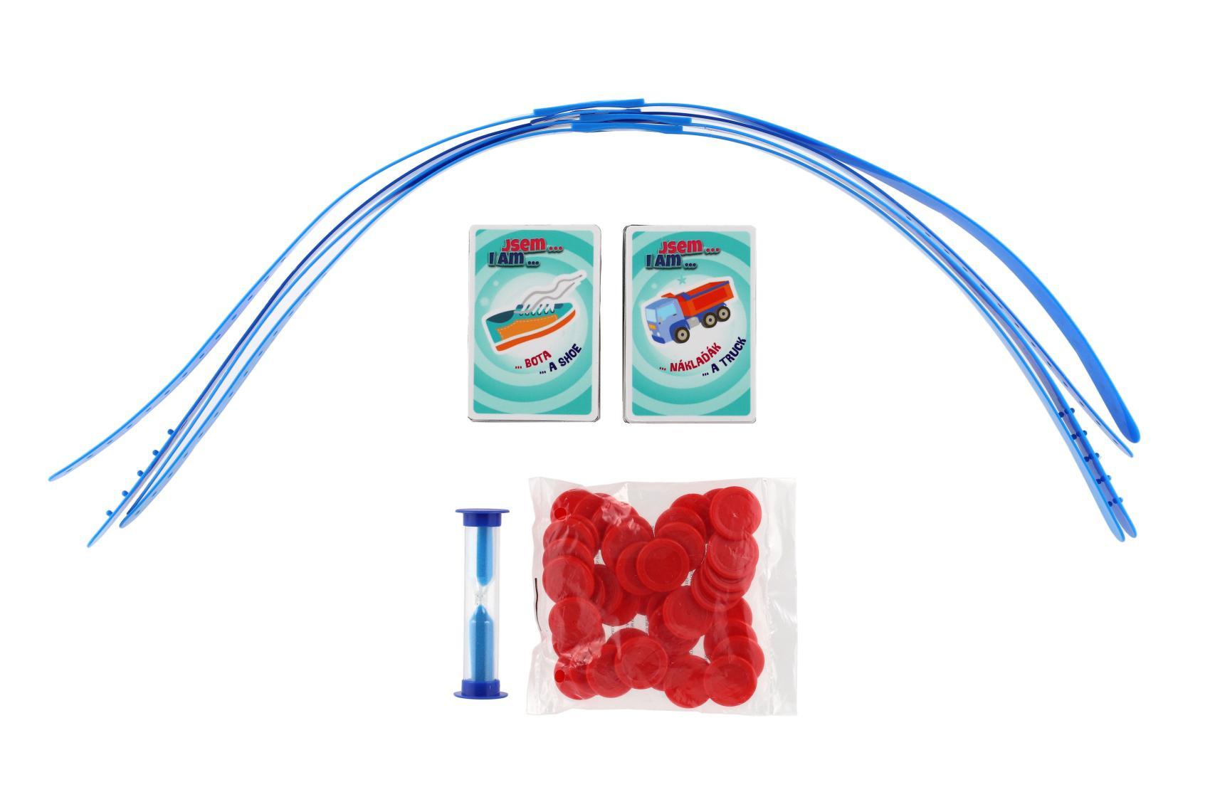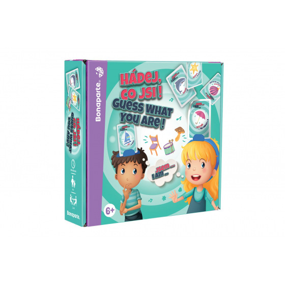 Zábavná společenská hra pro celou rodinu. Hra, která zaručeně rozesměje celou rodinu nebo partu přátel. Veselá hádací hra, při které si hráči nasazují čelenku s kartičkou a snaží se pomocí otázek uhodnout, kým nebo čím jsou. Formou hry si hráči osvojí také 80 anglických slovíček. Nasaď si čelenku, vyber si kartu a pomocí otázek, na které ti mohou spoluhráči odpovídat pouze ANO nebo NE, zjisti, co je na obrázku. Cílem hry je nasbírat co nejvíce žetonů za správné odpovědi v limitu přesýpacích hodin. Rozměry balení 23 x 21 x 6 cm. Vhodné pro děti od 6 let.