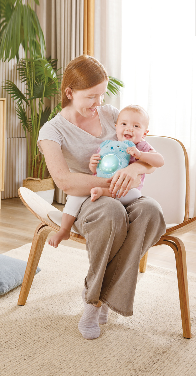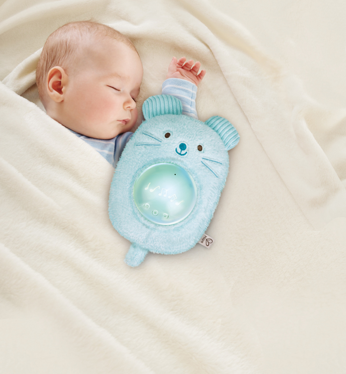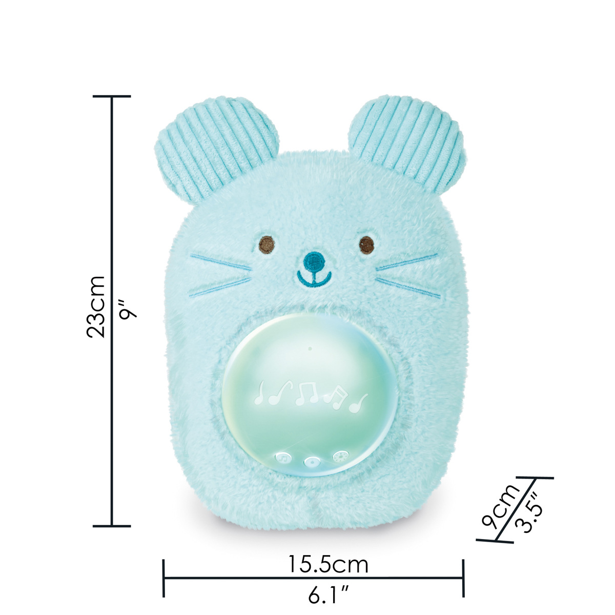 Usínejte s touto úžasnou plyšovou myší Mono s nočním světlem. Jemně zářící světlo, přirozené zvukové efekty a uklidňující ukolébavky pomohou těm nejmenším klidně usnout. Můžete dokonce nahrát 120 sekund svého vlastního hlasu a přehrát ho! Nastávající maminky mohou pomocí hudebního boxu přehrávat uklidňující zvuky a melodie svému bříšku, takže když miminko přijde, rozpoznají a budou se k nim vztahovat tytéž zvuky a melodie! Nabíjení přes USB kabel. Rozměr balení: 24x9x18cm. Věk: 0+