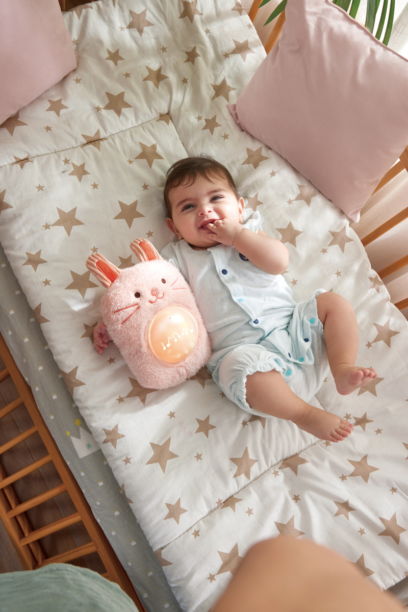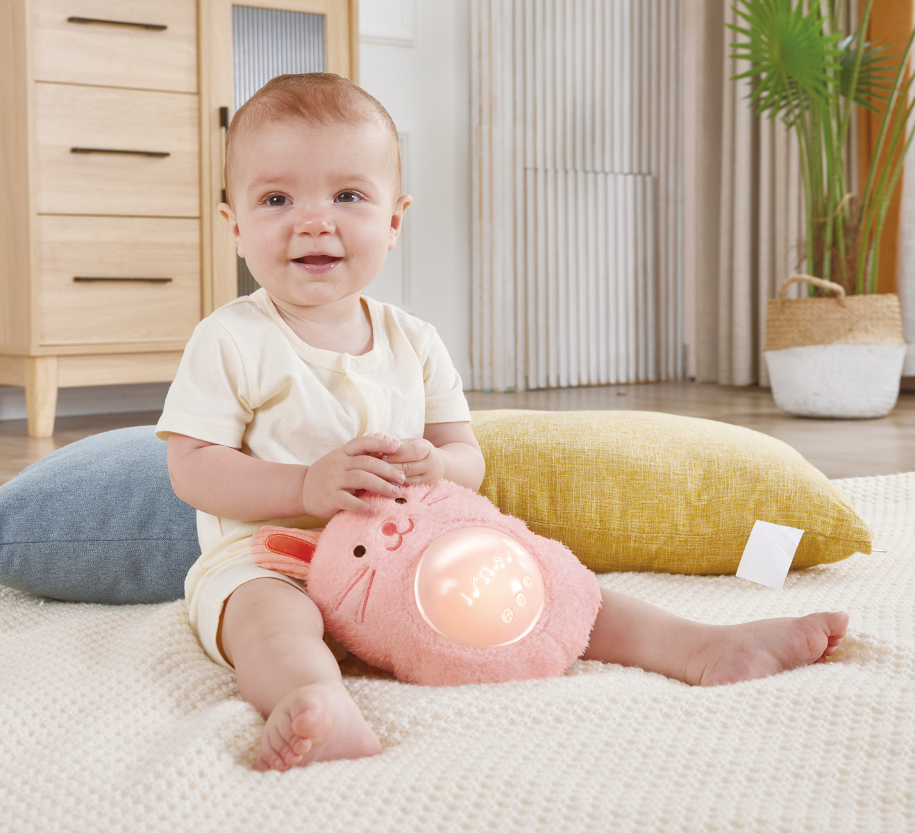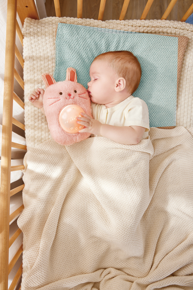 Usínejte s tímto nádherným nočním plyšovým zajíčkem Roro. Jemně zářící světlo, přirozené zvukové efekty a uklidňující ukolébavky pomohou těm nejmenším klidně usnout. Můžete dokonce nahrát 120 sekund svého vlastního hlasu a přehrát ho! Nastávající maminky mohou pomocí hudebního boxu přehrávat uklidňující zvuky a melodie svému bříšku, takže když miminko přijde, rozpoznají a budou se k nim vztahovat tytéž zvuky a melodie! Nabíjení přes USB kabel. Rozměr balení: 24x9x18cm. Věk: 0+