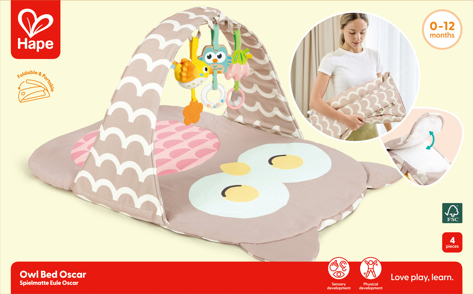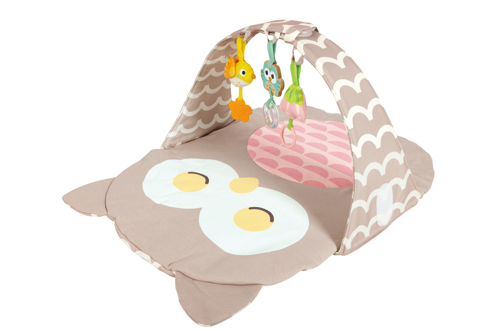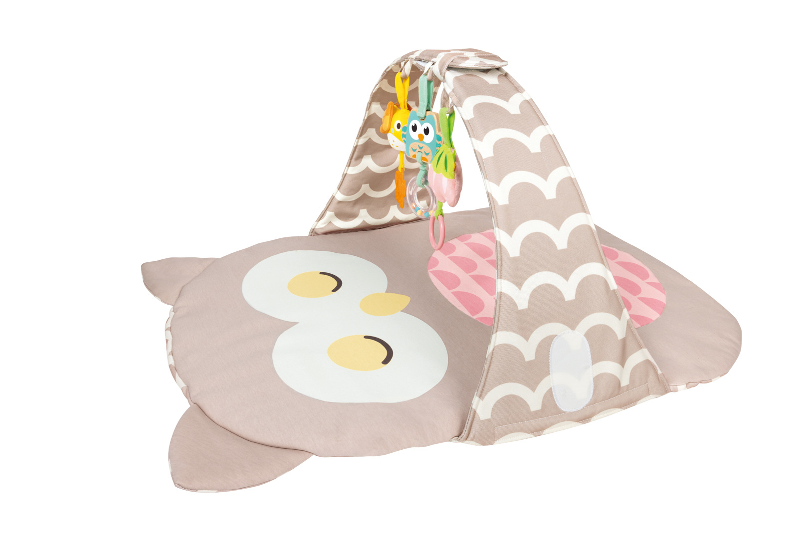 Interaktivní hrací podložka s motivem sovy je navržená pro rozvoj a radost vašeho miminka. Hrací podložka je vybavena hrazdičkou se závěsnými hračkami. Díky rozmanitým texturám, zvukům a kontrastním barvám podporuje smyslové zkoumání, rozvoj motoriky a kognitivních schopností. Měkký, polstrovaný design zajišťuje bezpečný a pohodlný prostor na hraní. Hrací podložka je lehká a snadno se skládá, takže je vhodná na cestování nebo skladování. Podložka je vyrobena z vysoce kvalitního bavlněného materiálu. Rozměry podložky: 59,5 cm x 38,5 x 88 cm. Rozměry balení: 36,2 x 58 x 7 cm. Věk: 0 m+