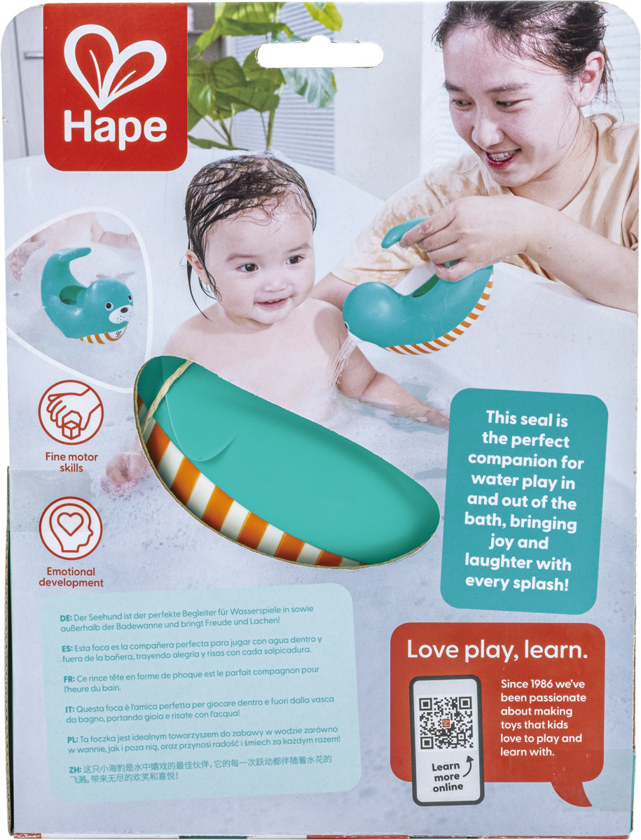 Tuleň je dokonalým parťákem pro vodní hrátky ve vaně i mimo ni. Konvička slouží jako interaktivní hračka do vany i jako jemný pomocník při oplachování miminek. Jakmile dítě povyroste, snadno se promění v konvičku na zalévání při hrách venku. Hračka, která přináší radost a smích s každým cákancem a promění každé koupání v zábavné dobrodružství. Děti si mohou hrát s proudem vody, trefovat plovoucí hračky a „cíle“ na stěně, nebo jednoduše smýt z pokožky mýdlovou pěnu. Každá hra pomáhá rozvíjet koordinaci oko–ruka a zároveň děti seznamuje s principem příčiny a následku. Hračka má široký otvor pro snadné naplnění a zakřivené držadlo pro pohodlné uchopení. Rozměry balení: 24,5 x 18 x 7,4 cm. Doporučený věk: 1-3 roky.