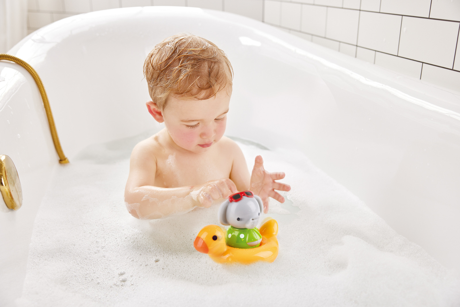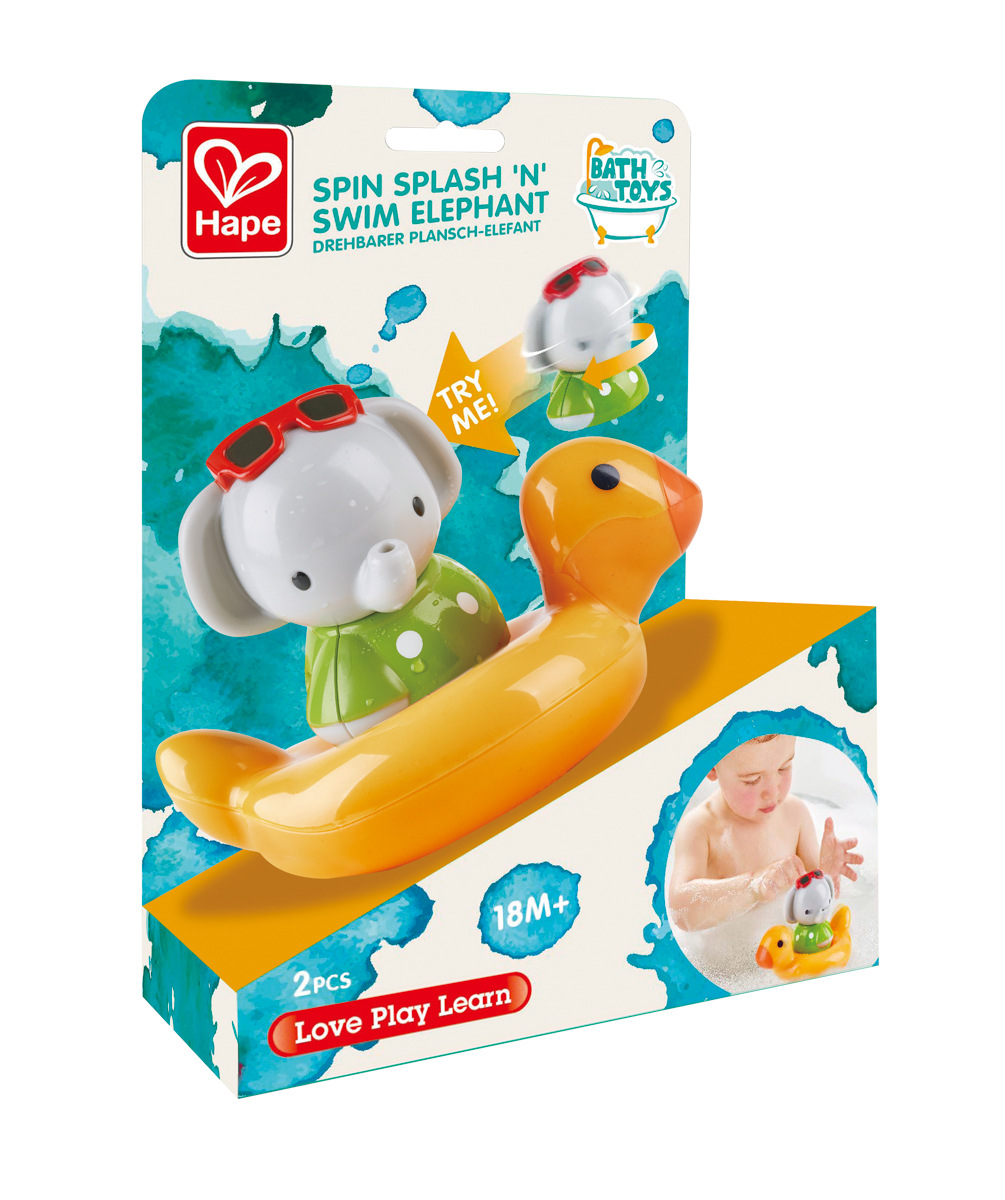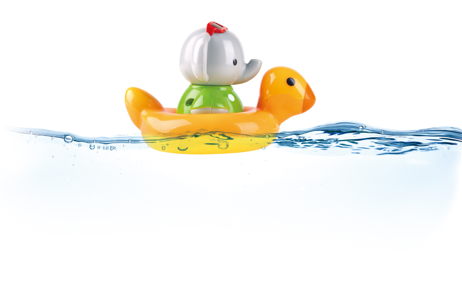 Tento bláznivý točící se slon je dokonalým parťákem do koupele! Jednoduše ho natáhněte, vložte do jeho plastového kachního kroužku a sledujte, jak se radostí točí! Pokud je voda teplejší než 35℃, kruh změní barvu! Balení: 10x24x16cm. Věk: 18m+