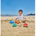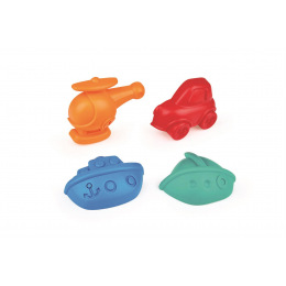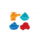 Sada bábovek ve tvaru dopravních prostředků - naučte se rozpoznat helikoptéru, loď nebo auto. Vyrobeno z kvalitního a odolného materiálu v oranžové, modré, zelené a červené barvě. Věk: 18m+. Rozměr: 14 x 13 x 33 cm.