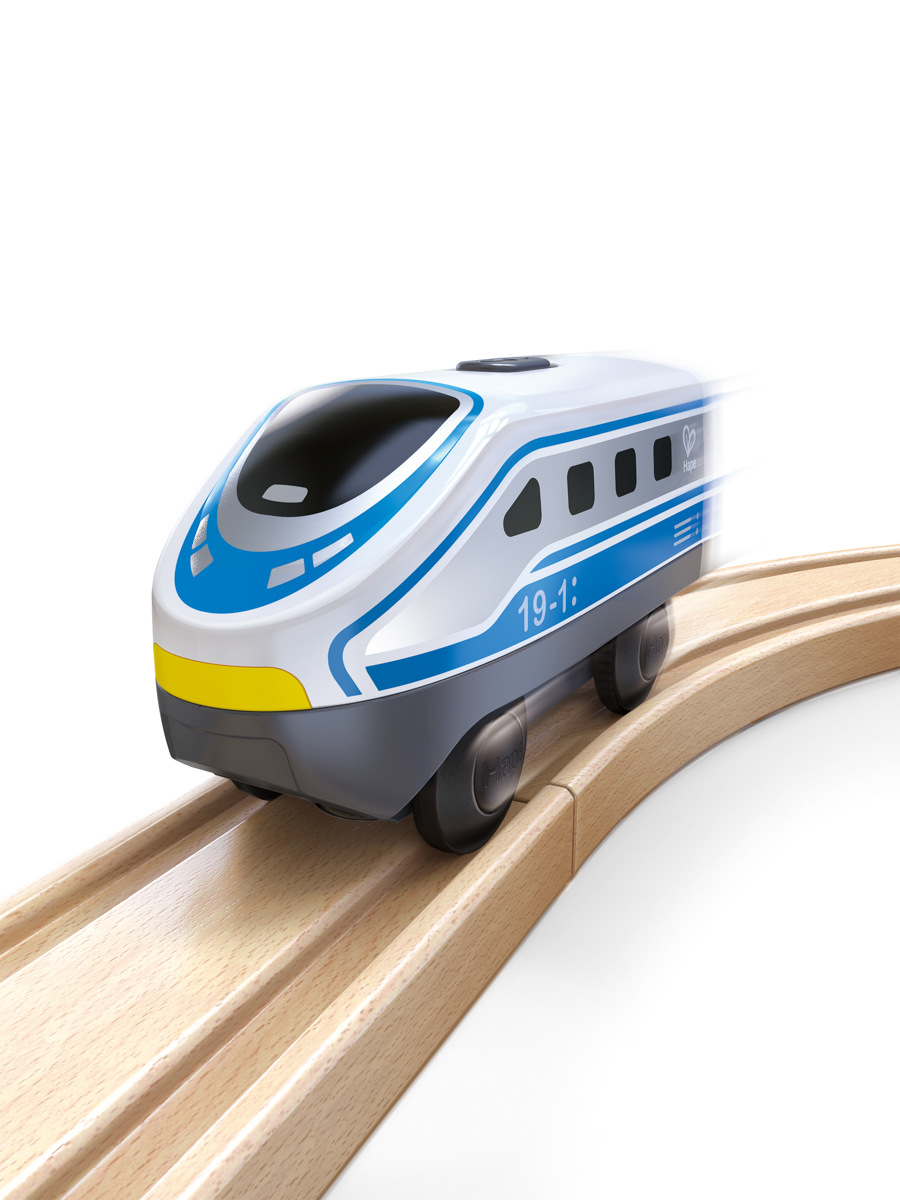 Stačí se pohodlně posadit, uchopit ovládací panel, kterým ovládáme chod vpřed i vzad.Poslouží při rychlé přepravě lidí, nebo těžkého nákladu. Před žádným terénem se nezastaví, strmé kopce a prudké sjezdy zvládá s elegantní lehkostí. Zůstane stát nebo se rozjede přesně tam, kde je potřeba. Lokomotiva je kompatibilní s dřevěnými vláčkodráhami Brio