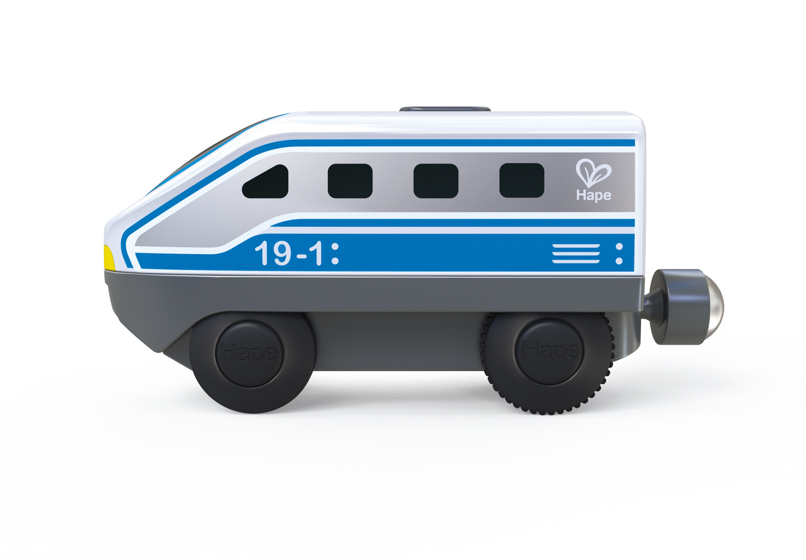 Tato bateriově poháněná lokomotiva Intercity je skvělým začátkem každého dětského železničního dobrodružství. Pomocí jednoduchého přepínače na horní straně mohou děti ovládat jízdu vlaku vpřed i vzad. Díky robustnímu designu a veselým barvám je tento vláček ideální pro děti od 3 let. Snadno se ovládá a je kompatibilní s dalšími vláčkovými sadami Hape. Podporuje představivost, hraní rolí, rozvoj jemné motoriky a soustředění – každý výlet s ní je zábavný i poučný. Baterie: 2 x AAA, nejsou součástí. Rozměry balení: 10 x 5 x 16 cm. Věk: 3+
