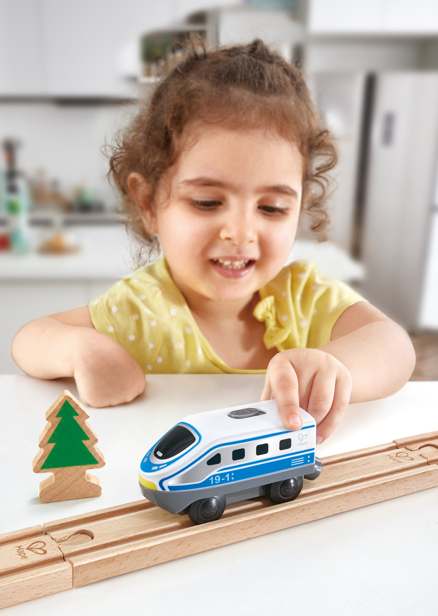 Zažijte radost z nadčasové hry s vláčkem od Hape. Nabijte jej pomocí USB nebo otočte kličkou, aby se vlak dal do pohybu a rozsvítil světla. Vláček lze použít pro samostatnou hru nebo s většinou dřevěných železničních souprav. Manipulace s vláčkem a otáčení klikou pomáhá zdokonalovat zručnost vašeho dítěte a koordinaci ruka-oko. USB kabel je součástí balení. Rozměr balení: 18x5x10 cm. Věk 3+