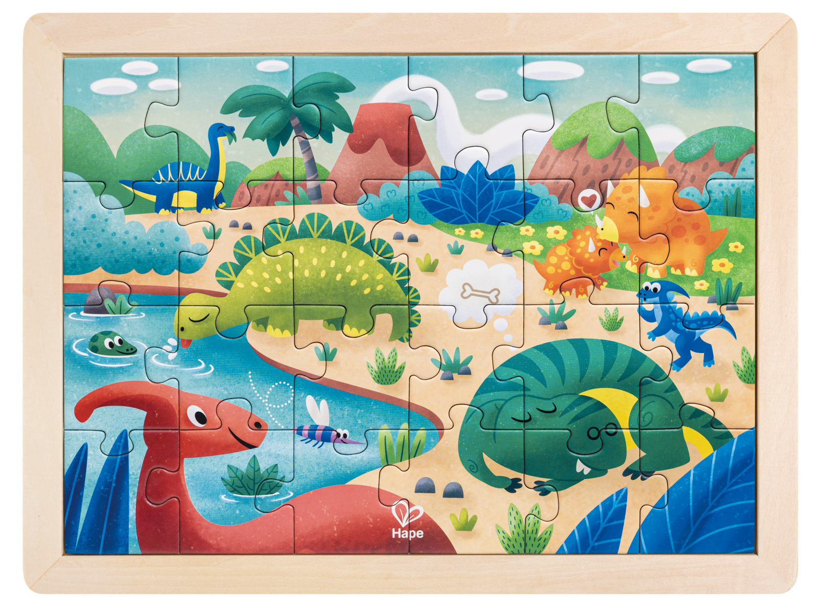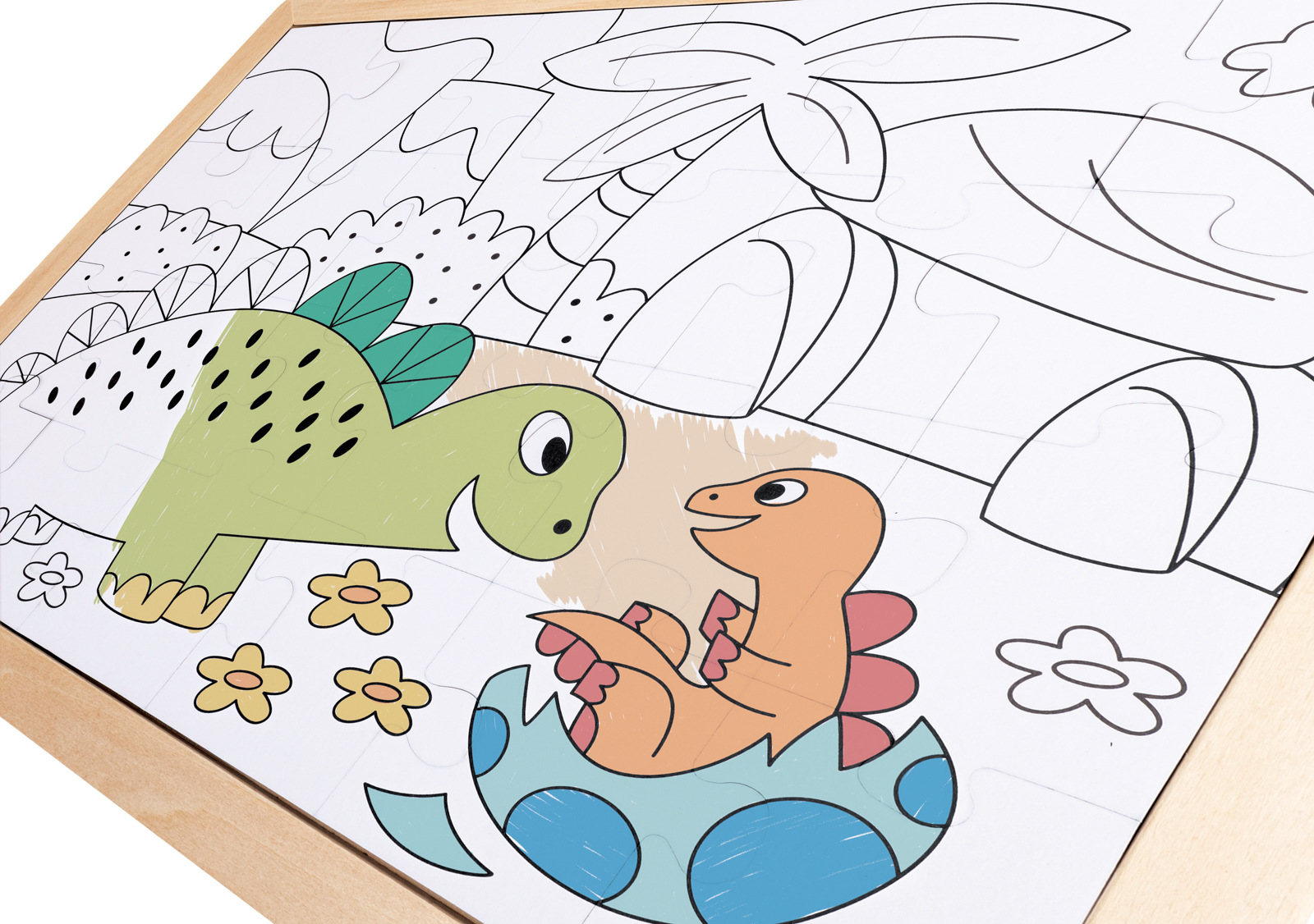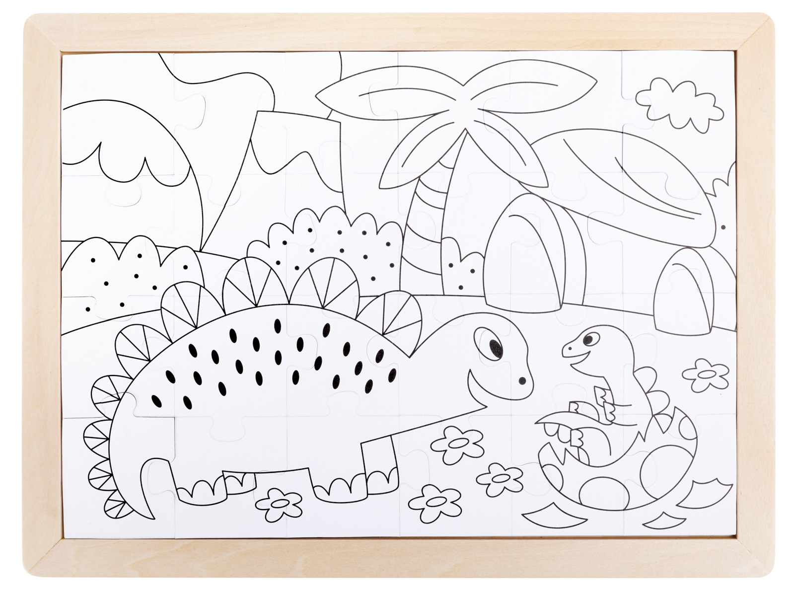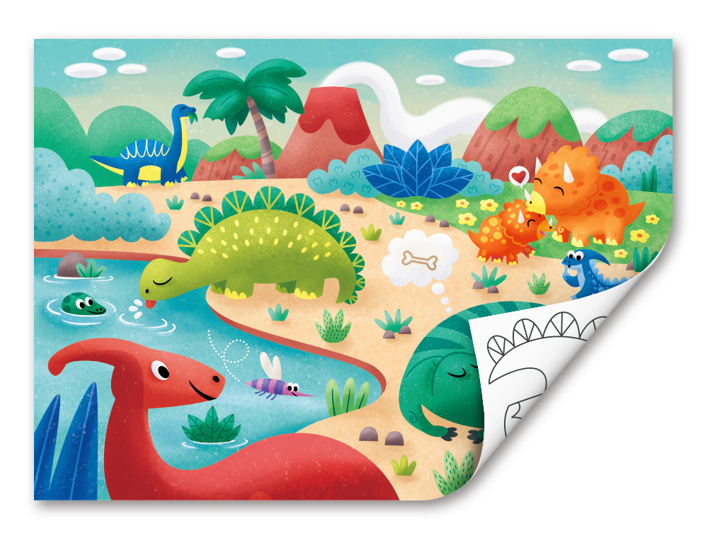 Vyjměte všech 24 dílků skládačky a umístěte je jeden po druhém tak, aby se dinosauři na plakátu vytvořili dílek po dílku. Až budete hotovi, můžete puzzle opatrně otočit a na zadní straně najdete prázdnou šablonu puzzle, kterou si můžete sami vymalovat různými barvami! 24dílná skládačka obsahuje barevné dílky skládačky a na zadní straně šablonu skládačky, kterou si děti mohou vybarvit. Balení: 26,2x1,4x29,7cm. Věk: 3+