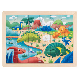 Puzzle na desce s obrázky zvířátek z džungle jsou v ideální velikosti pro malé ručičky. Sada obsahuje 10 dílků. Poutavé barevné provedení. Hračka pomáhá rozvíjet motorické dovednosti. Věk: 24m+. Rozměr: 29,4 x 20,8 x 1,8 cm.